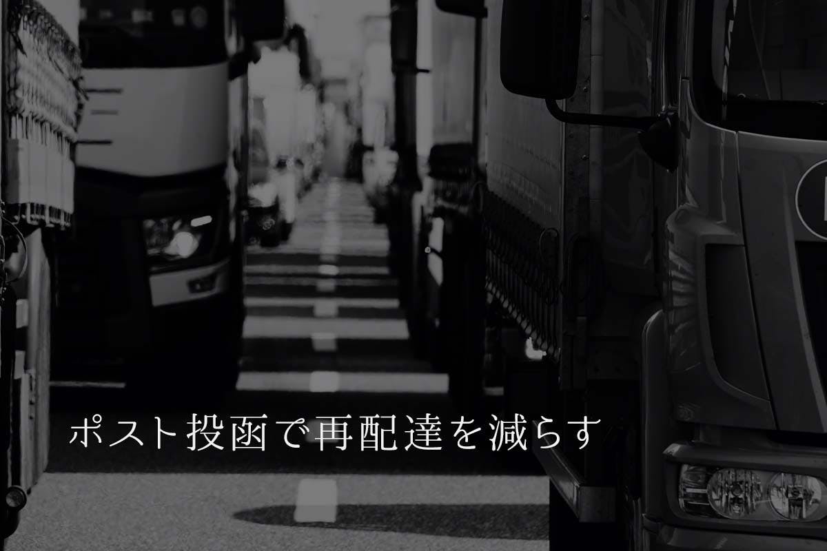 容器を薄型にし、ポスト投函でのお届けを可能にすることで、不要な再配達を減らし、トラックから排出されるCO2の削減へと繋がります。