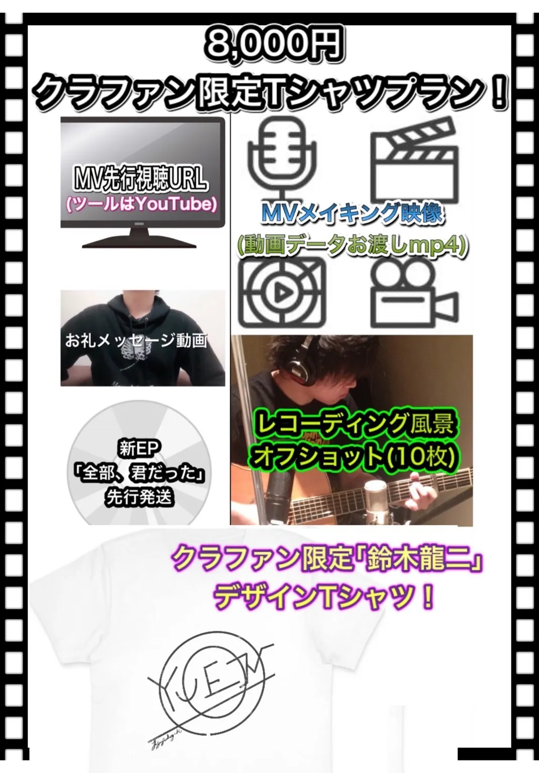 ■ 「鈴木龍二」デザインの、クラウドファンディング限定のTシャツ1枚(S / M / L / XL/2XL)