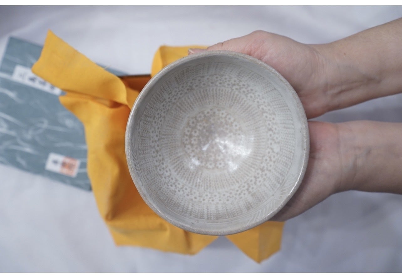 2021/11/21 16:10シーサーだけでなくお茶碗も、今回の挑戦のリターンで人気になっています。「三島焼」についても、今回祖父にインタビューしてみました。=============三島焼の特徴その1:象嵌(ぞうがん)うつわの表面に彫りを入れ、白土を埋め込む装飾が特徴です。三島という名の由来については諸説ありますが、その一つに「三島暦」から名付けられたという説があります。三島暦(みしまこよみ)とは、静岡県三島市にある三嶋大社が発行していた暦のことです。陶器表面の装飾模様を、三島暦の仮名文字に見立てたのが名の由来といわれます。三島の特徴その2:印花(いんか)この装飾方法は、スタンプで連続模様を押したものです。まず土が柔らかい状態でスタンプを押します。次にその凹んだ部分に白い土を埋め込んでいきます。そして表面をきれいに削って、釉薬をかけて焼くと画像のような作品が出来あがるのだそうです。=============この可愛い小花柄のスタンプを手で押し込む作業が、とても根気と時間がかかり、茶碗1個につき1000〜1200回も打つのですって!器械ではなく手で一つ一つ付けるからこそ、それぞれのお茶碗がどこか似ているようで違う仕上がりになるのが、味があって楽しみなんだとか。こんな緻密な作業ができる88才のおじいちゃんはやっぱり凄い!三島のホテルに納品したこともあるほど人気のお茶碗も、是非チェックしてみてください。 もっと見る