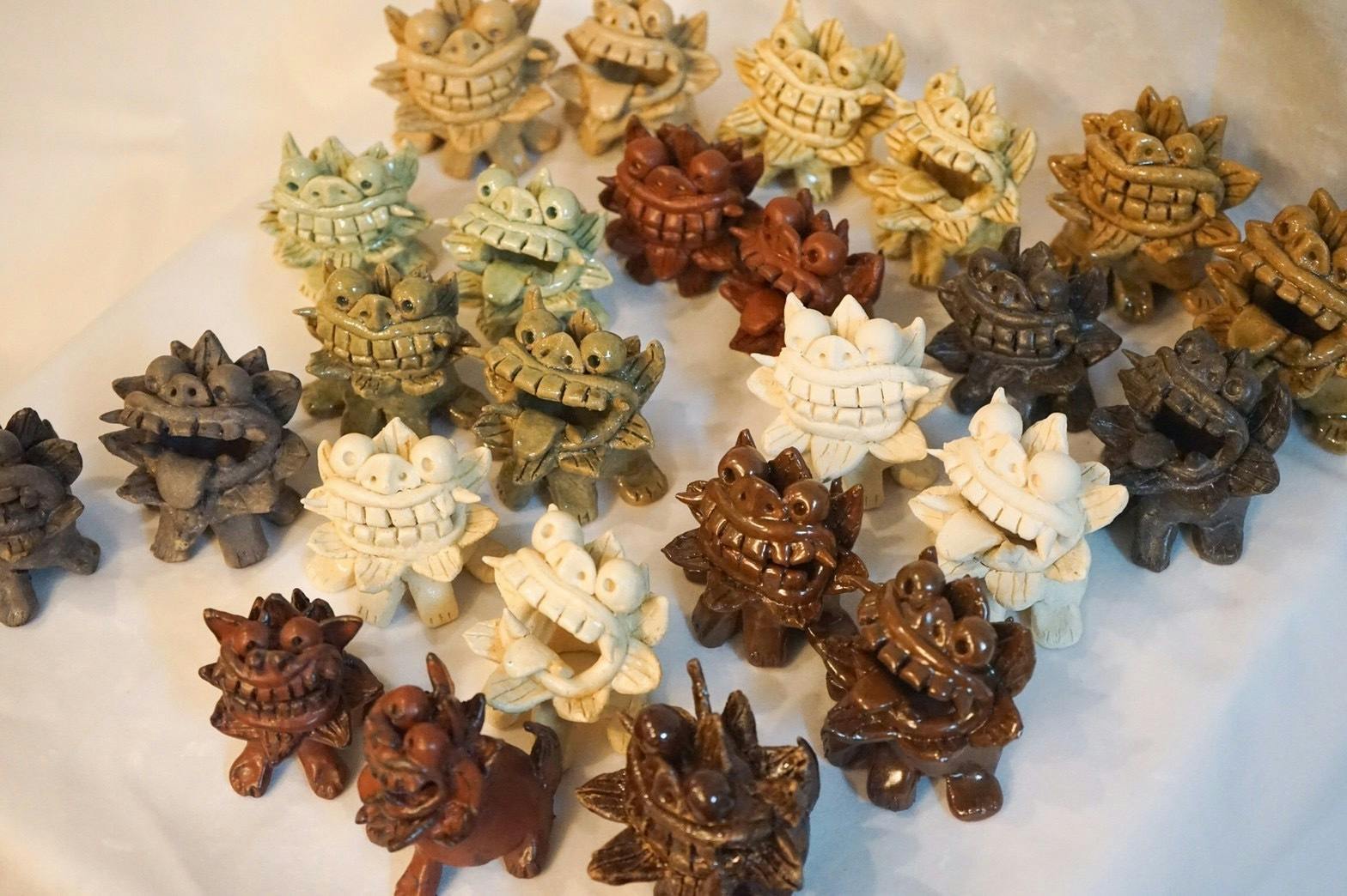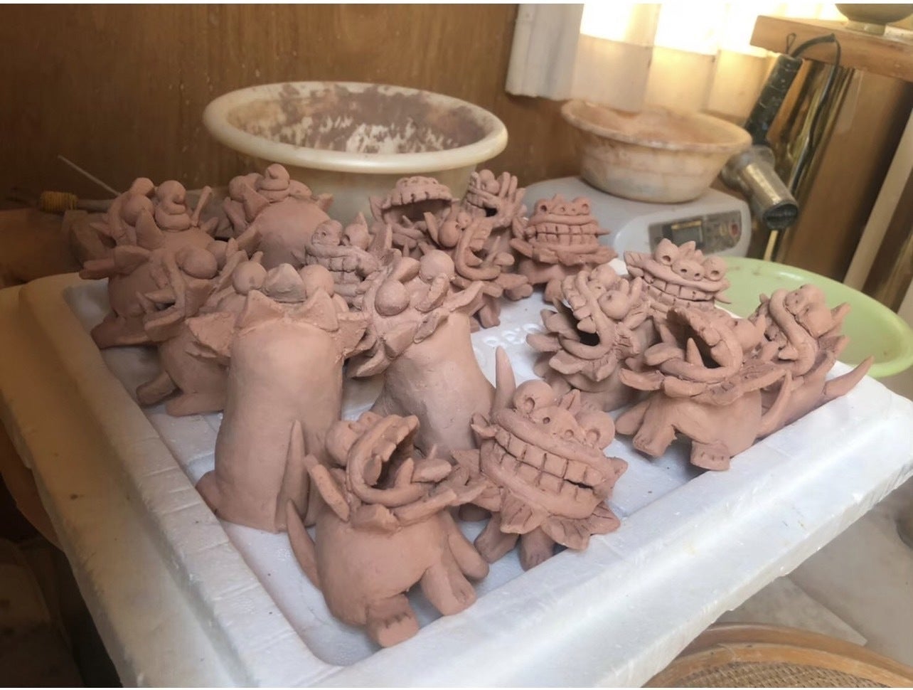 最近ではコロナ終息を祈りながら、魔除けの意味を持つシーサーを数多く製作していて、そのシーサー達は表情がとても愛らしく、身近な友人からも「可愛いから譲ってほしい!」と言われるほど人気を得ています。