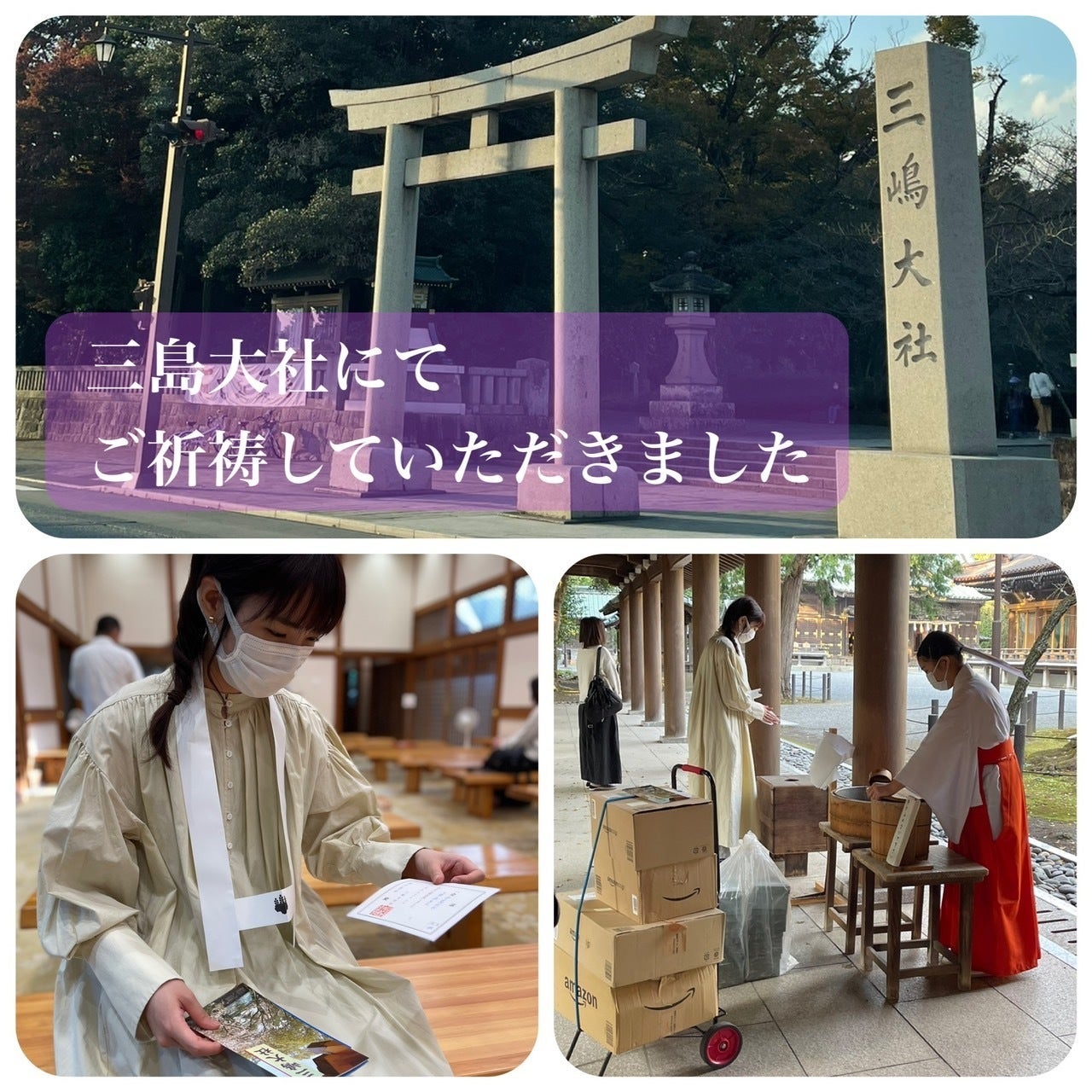 伊豆の一の宮、静岡県三島大社の神主さまにお願いして、善徳じいちゃんのシーサーとお茶碗をご祈祷いただいた際の様子です。