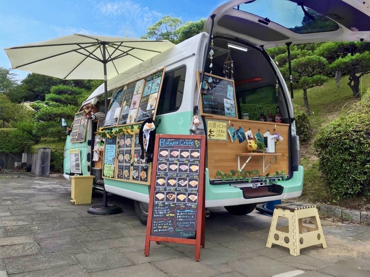 過去にペンギン飼育員として働いていた経験から大好きなペンギンをキッチンカーの名前にしました。お店にはお客様から頂いたペンギン達がたくさん乗り込んでいます(笑)