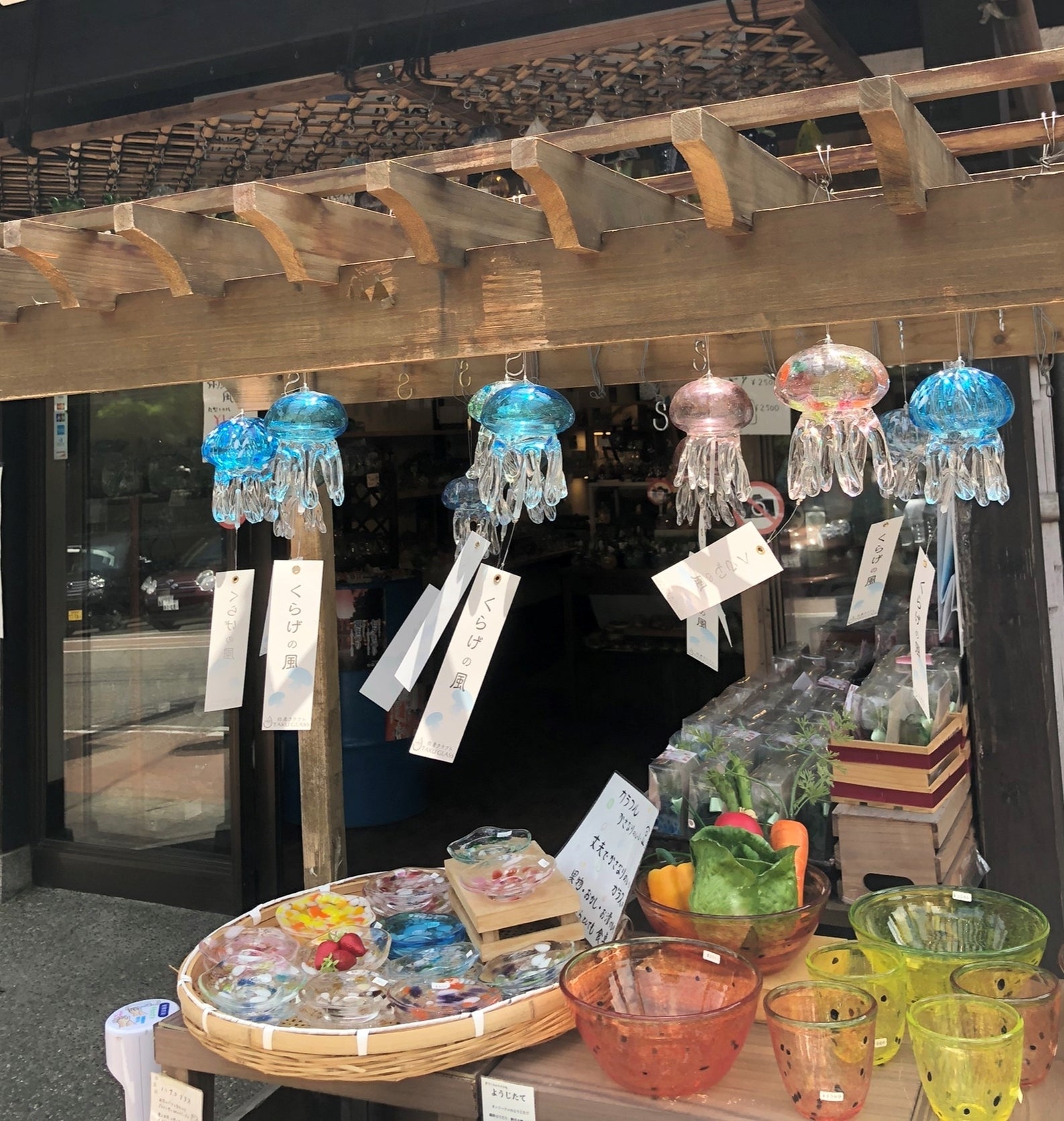 TAKU GLASSで1番人気の「くらげ」の風鈴。水琴窟をイメージした音色で、当たる足によって音が違うので多重層の響きのよう。1つの風鈴で色々な音色が楽しめます。
