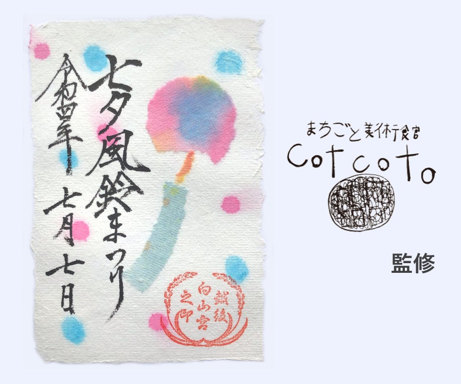 それぞれの思いが重なり合って、どんどん進化する七夕風鈴まつり。障がいがある人の作品レンタルを通して、障がいがある人と社会、人と人との関係を結び、コトコトと深めていこうとする「まちごと美術館cotocoto」さんとのご縁で、福祉施設に通う皆さんからご協力いただけることになりました。施設に通う皆さんは日頃、さまざまな雑貨物などを製作していますが、イベント以外にお披露目する機会がなかなかありません。このたび、その素敵な技術をお借りし「ちぎり絵御朱印」をデザインから製作まで行っていただきます。子どもたちの思いを乗せ、風に揺られる風鈴を思い描きながらデザインした返礼品の御朱印。「楽しい!」「役に立てるのがうれしい」「みんなにもらって欲しい」。本当の意味で互いの福祉活動になっています。関わる人、参加する人、誰もが笑顔になれるお祭りをずっと一緒につくっていただけたらと思います。