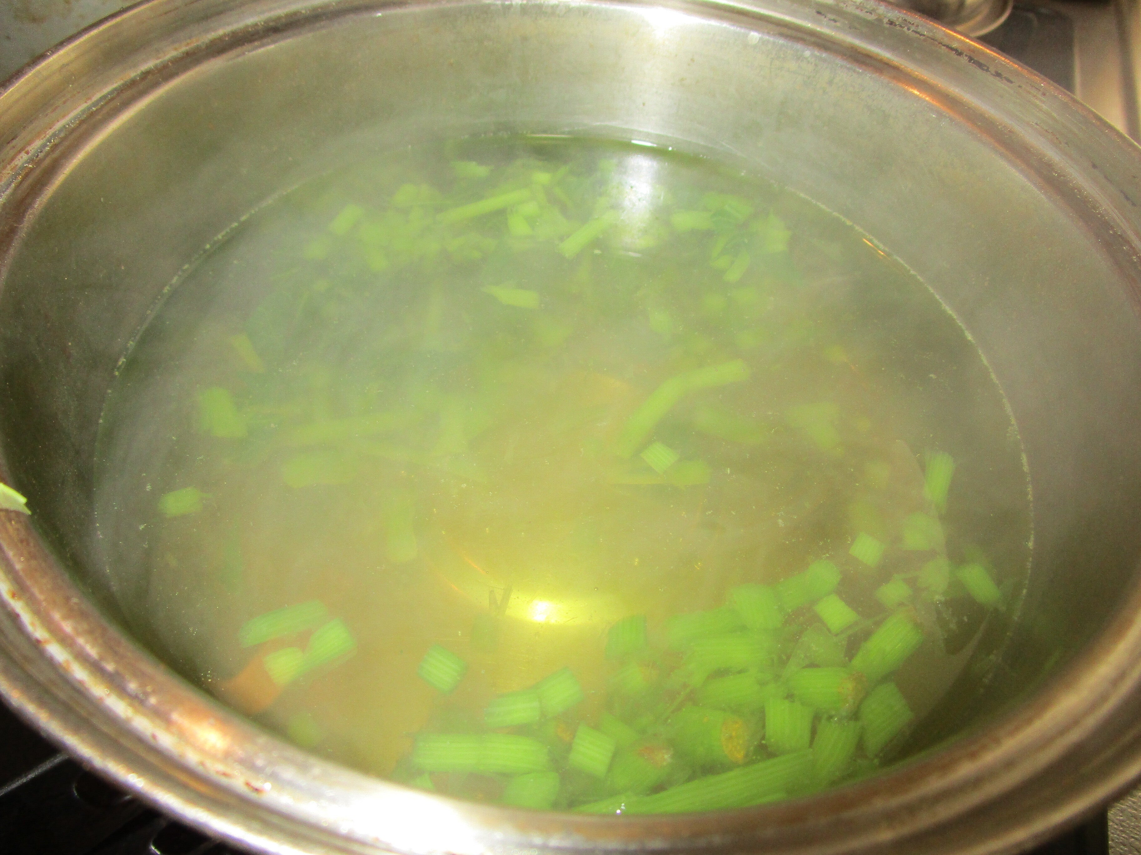 下記は、アシタバの茎を煮たものです。煮汁が黄色くなっているのがわかりますか?