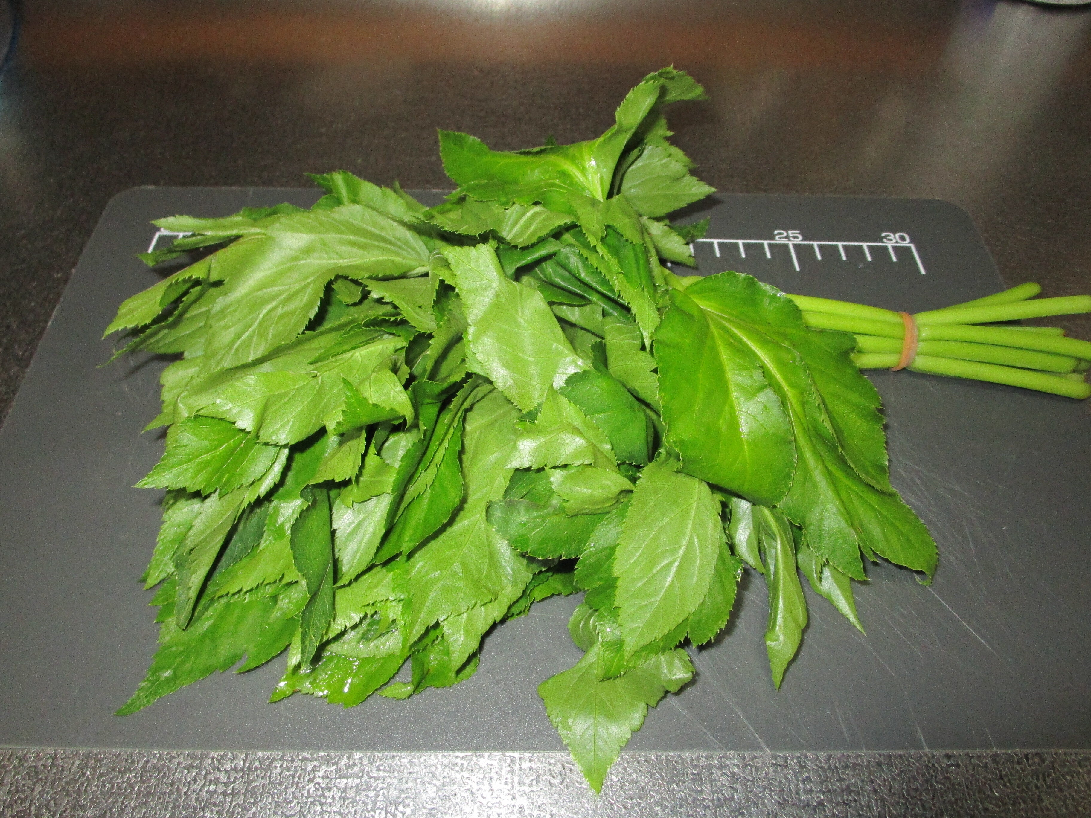 この写真のアシタバは、八丈島産で農家さんよりいただいたものです。