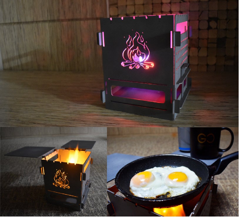 普段の生活で社会や人間関係のストレスから離れ、自然の中で時間を忘れキャンプを楽しんでいだたけるようにおしゃれなデザインで癒される焚き火台を制作しました。