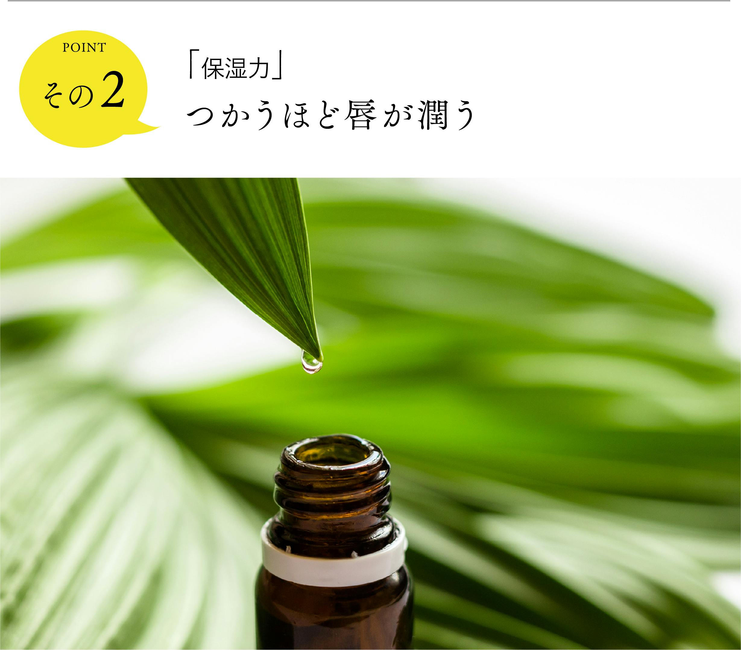 「月桃リップバーム」の良いところは1日に何度も塗り直さなくてよいほど潤いが持続することです。唇に潤いを与え、乾燥によるカサツキを防ぎます。