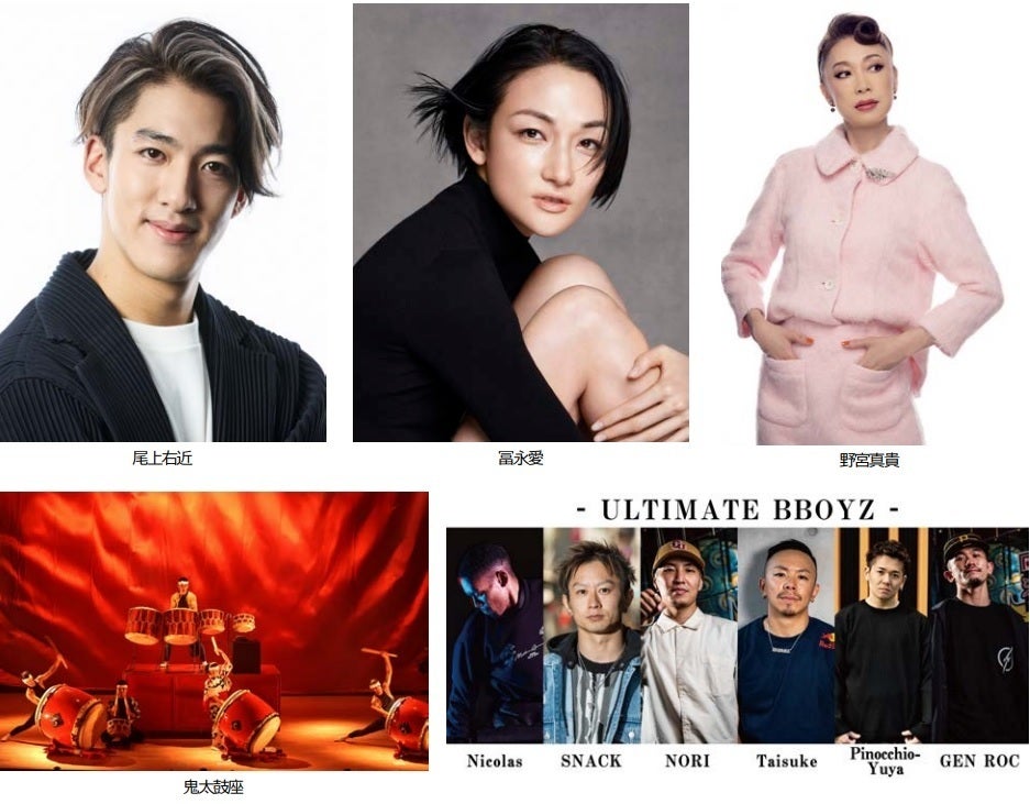 歌舞伎俳優の尾上右近や、モデルの冨永愛、ミュージシャンの野宮真貴、和太⿎集団の⻤太⿎座、ダンスチームの ULTIMATE BBOYZ の出演が決定いたしました。