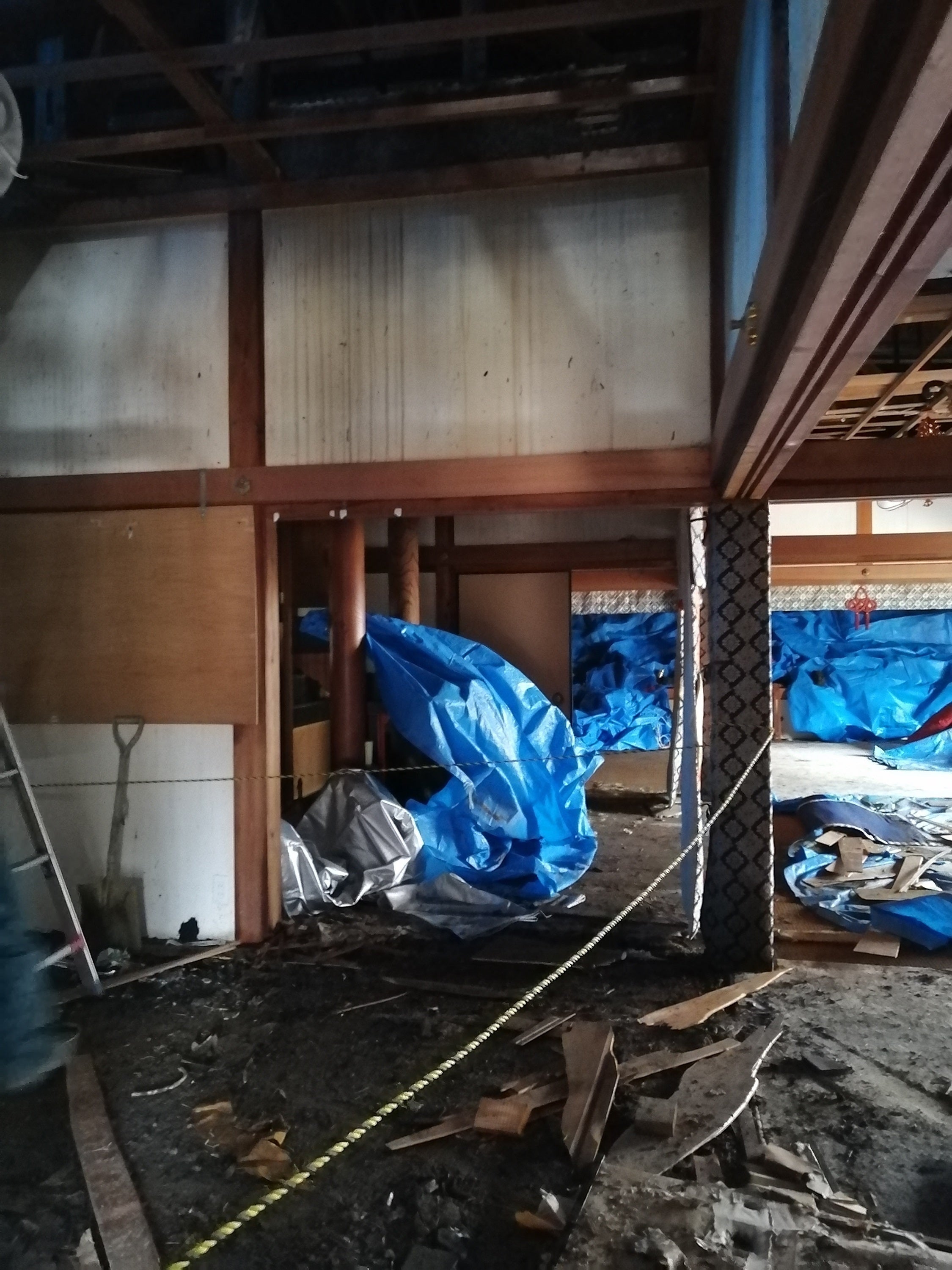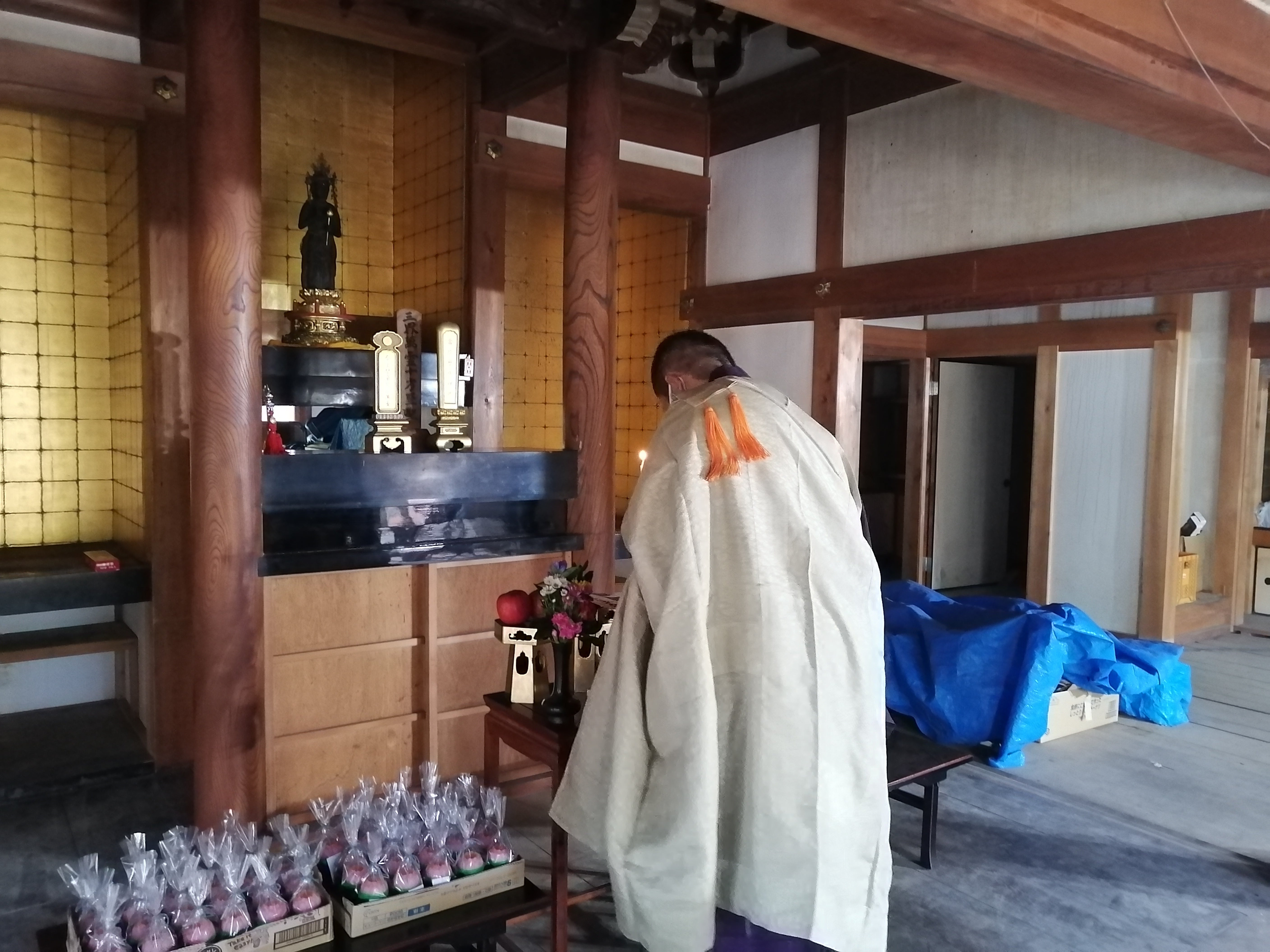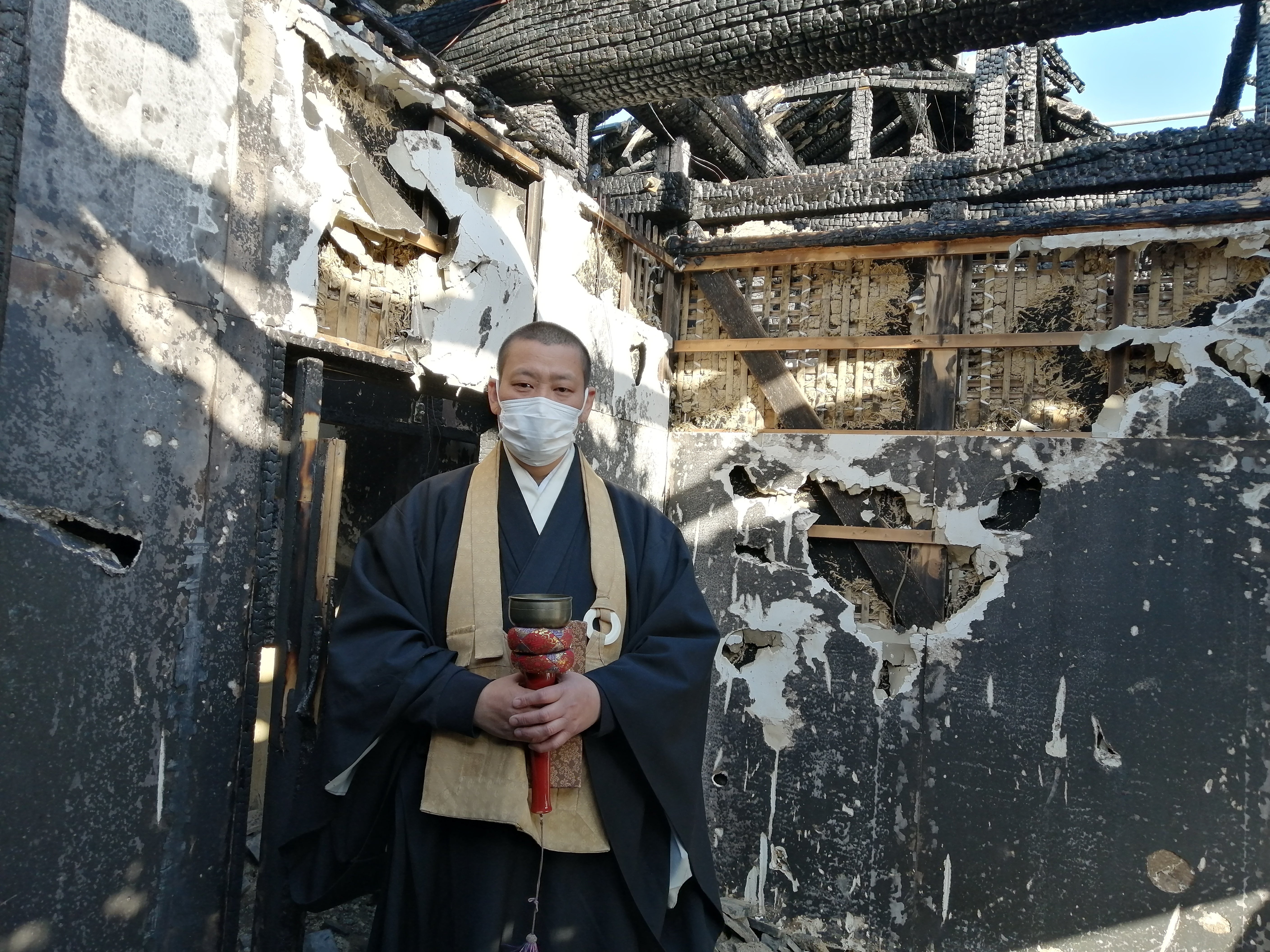 現在、焼け落ちてしまった庫裏は解体され、一部焼失し消火活動で水浸しになってしまった書院、本堂については、畳をすべて上げ、応急処置を施し、できる行事、法要については執り行っております。