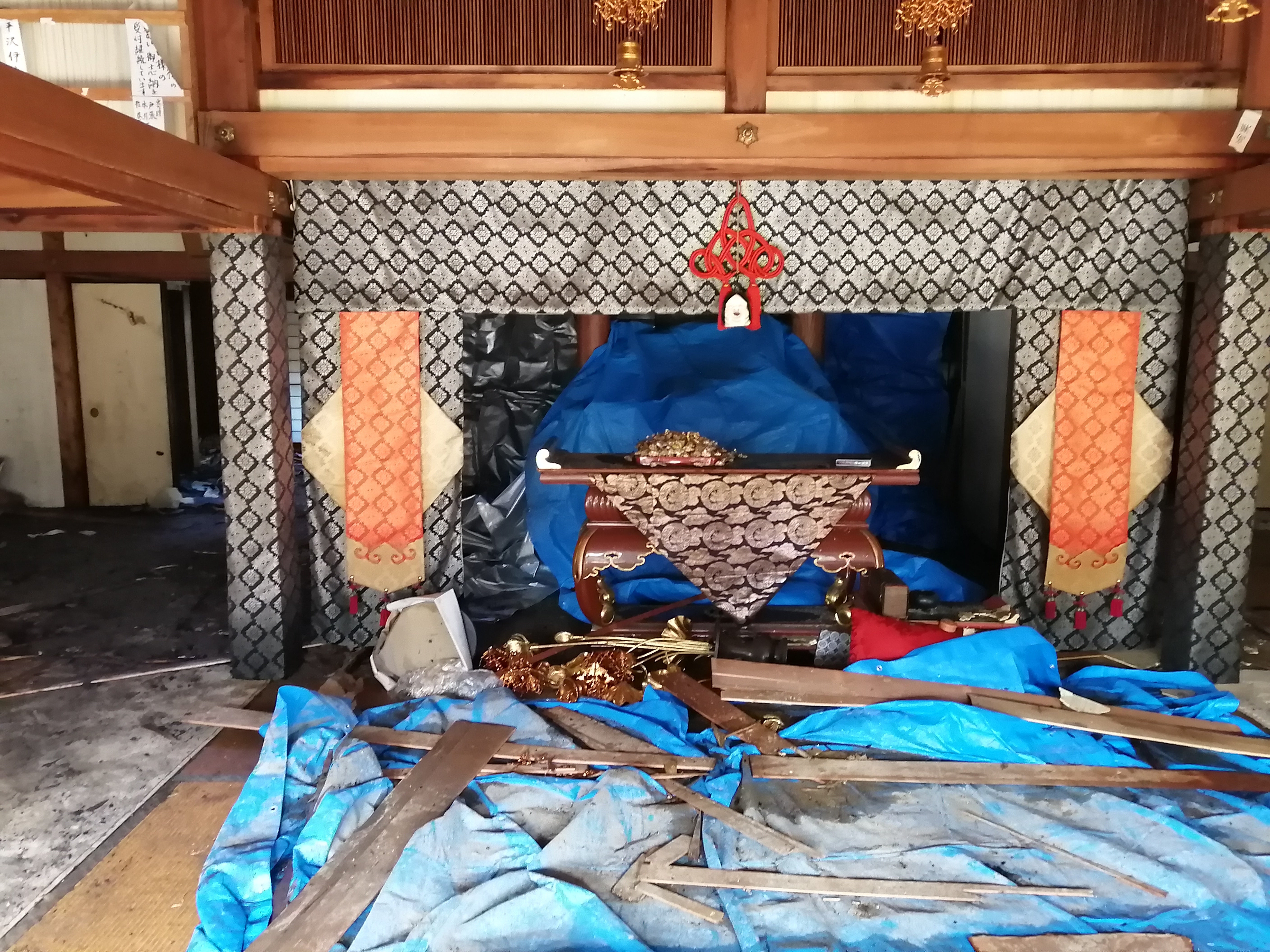 ご祈祷するはずだった節分のお札も濡れてしまいました。仏様はブルーシートで保護していただきました。