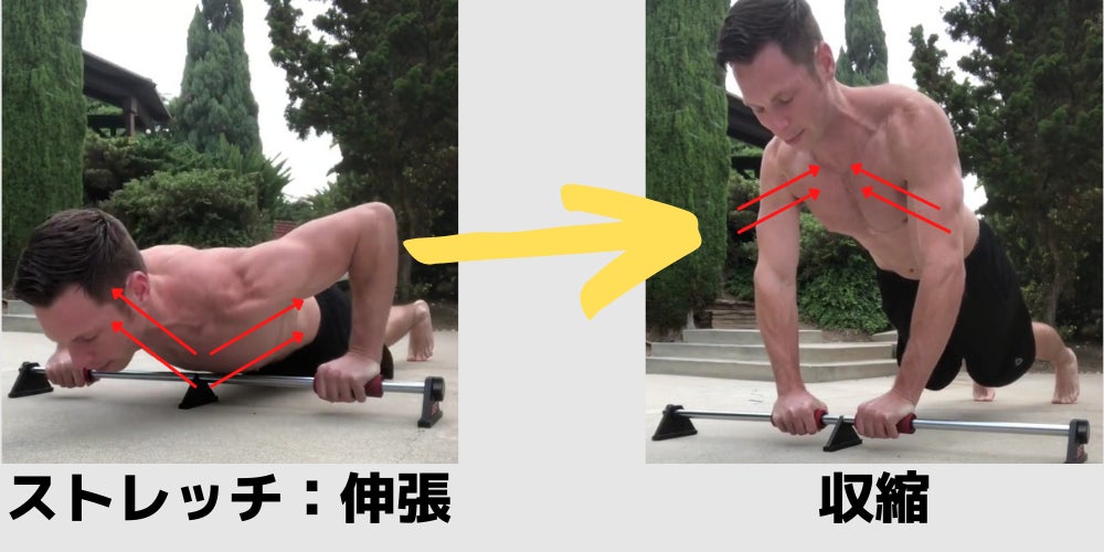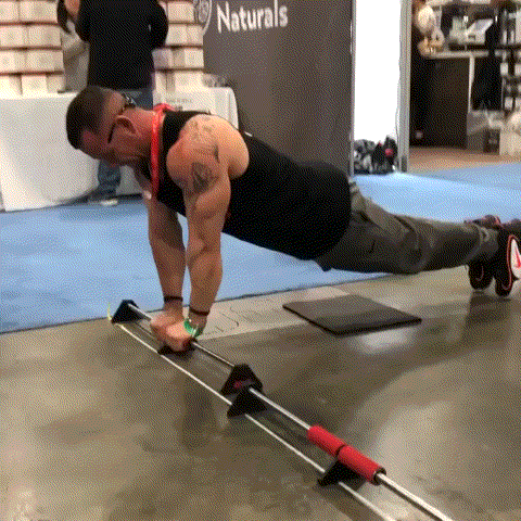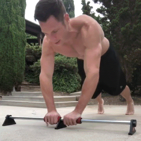腕立て伏せの際に持ち手がスライドすることで大胸筋のストレッチと収縮を促し、ピンポイントに大胸筋を鍛えられる!!