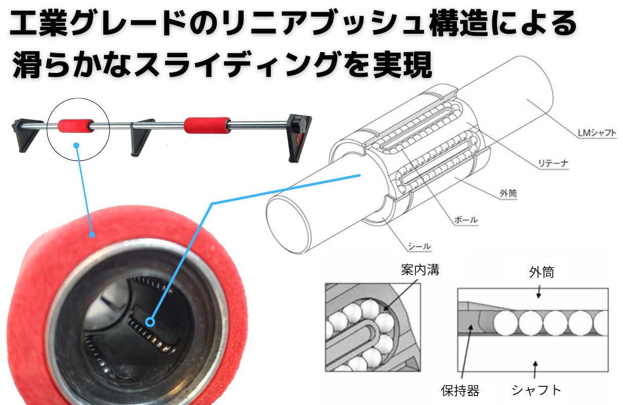 アメリカのCISCO社が開発し米国特許を取得したリニアブッシュ構造のスライディング式プッシュアップバー