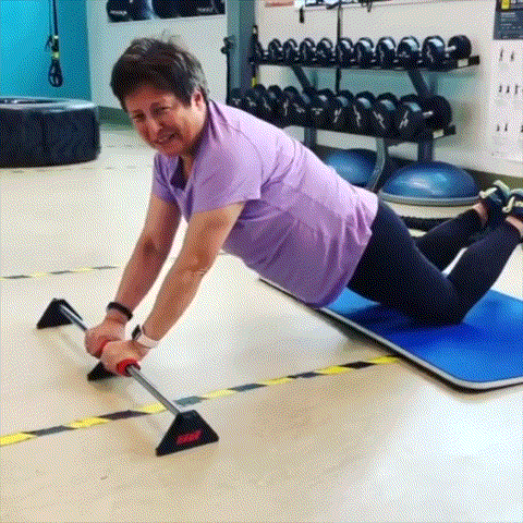 A:持ち手がスライドすることで幅広いトレーニング方法で使用可能です。スライディングエリアが固定されているので安全かつ、しっかり負荷をかけたトレーニングが可能です。