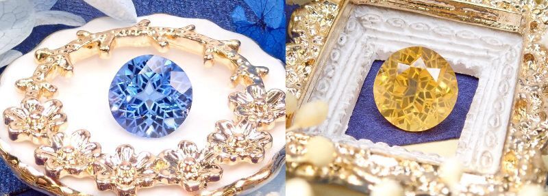 ダンデライオンカットの王者、とも言えるような風格漂うブルーサファイアとイエローサファイアをご用意しました。