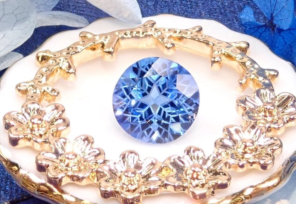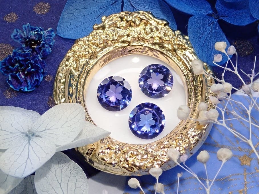 さくらインカットの中でも、特に人気の高いタンザナイトをご用意致しました。多色性が魅力のタンザナイトを、魅惑のさくらインカットが艶やかに彩ります。