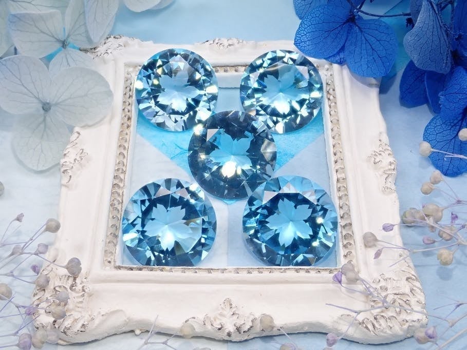 宝石トランプ+【さくらインカット】ロンドンブルートパーズ6mm+シミズ貴石 清水幸雄氏サイン