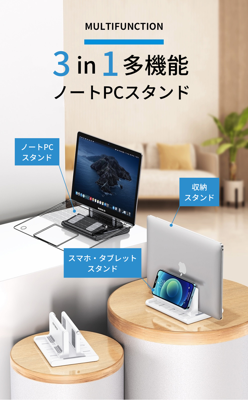 そんな願いを叶えるべく、3in1多機能ノートPCスタンドがついに日本に初上陸しました!
