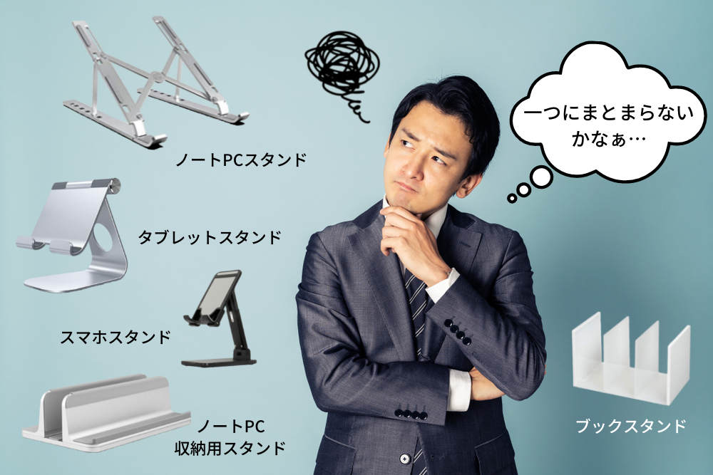 テレワークで必要だと思い、つい色んなスタンドを買ってしまっていませんか?収納に困る上、使うたびに出し入れするのが面倒!
