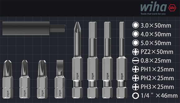 また、ドライバー本体に付属のビットは以下のようになっております。
