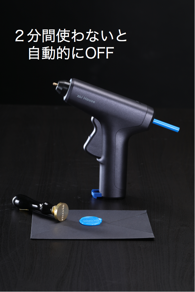「Zai Hause DIY-KIT PRO 」の電動グルーガンには、2分間操作しないと自動で電源がOFFになるセーフティ機能が付いているため、誰でも安心して使えます。