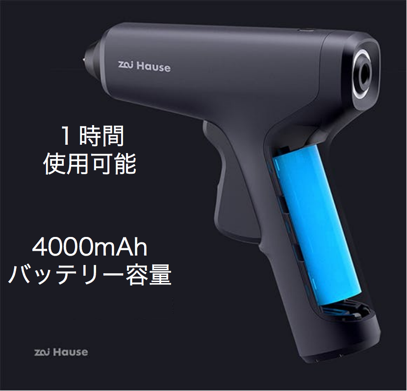 「Zai Hause DIY-KIT PRO 」の電動グルーガンに搭載のバッテリーは大容量の4000mAh。