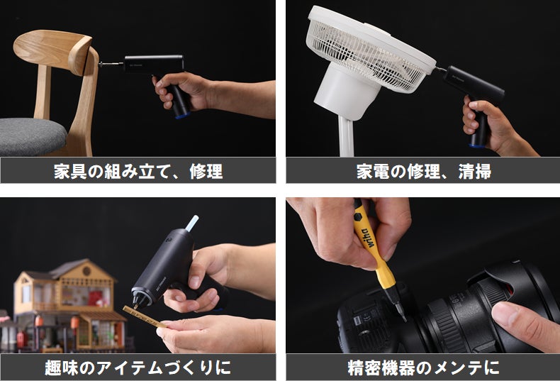 このセットだけで精密機器の電池交換から、家具の組み立て、自転車やスケートボードの修理、カスタマイズ等、日常のあらゆるDIYニーズを満たします。