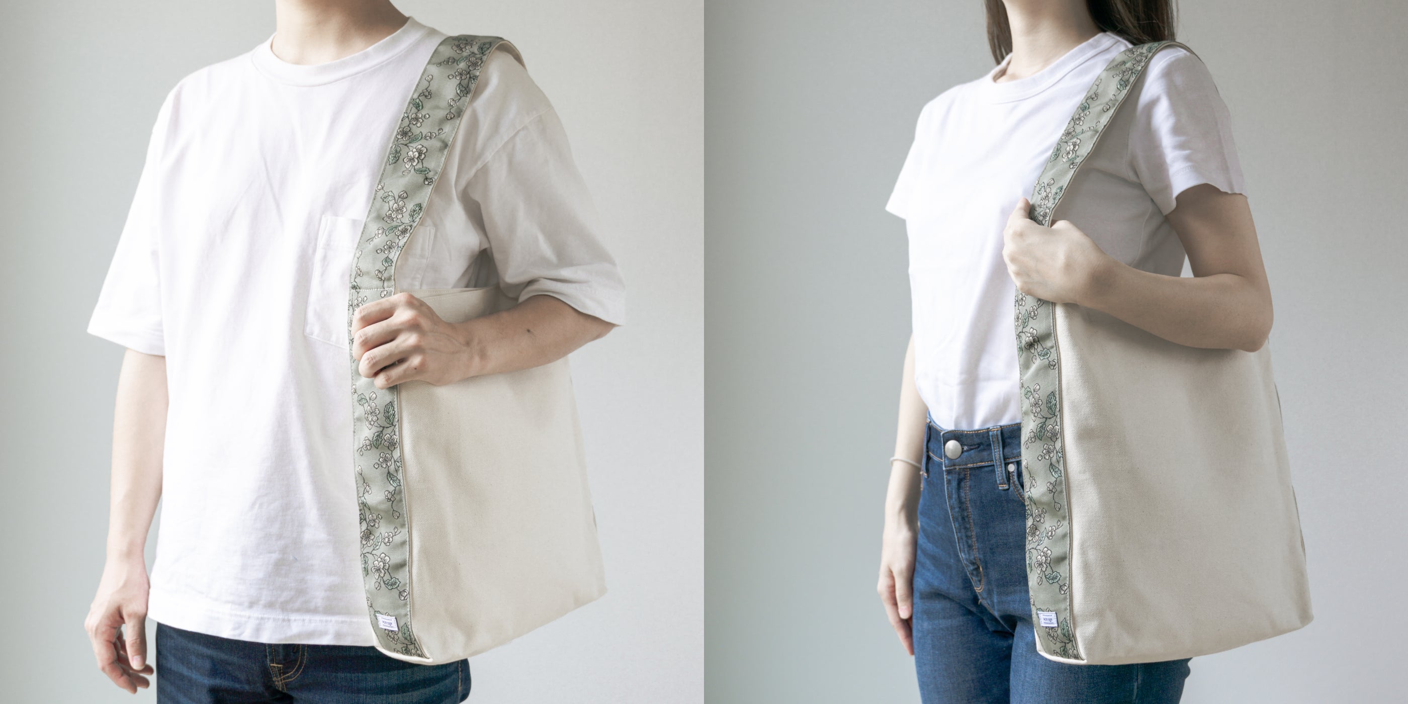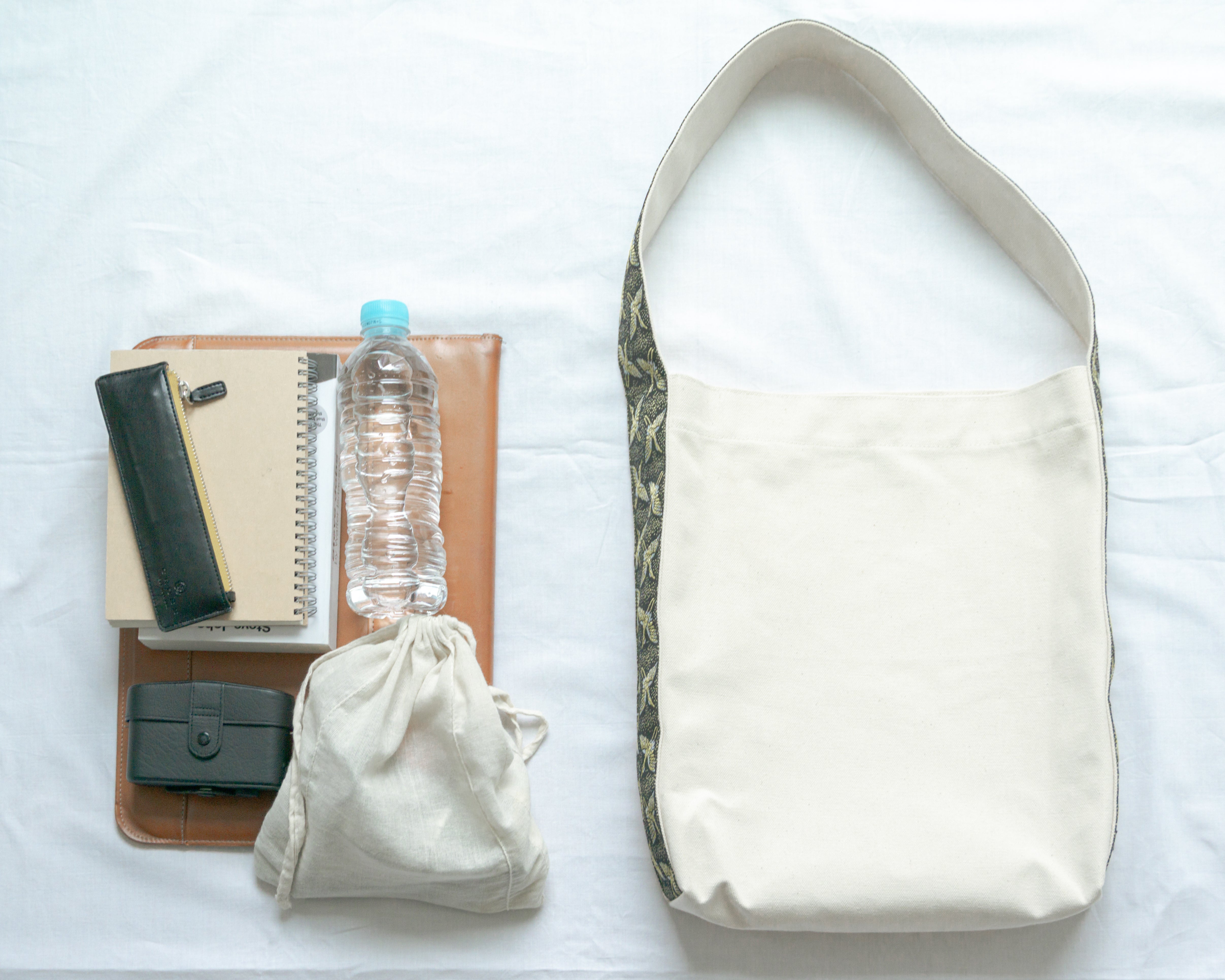 また、本体の素材も、高度な糸撚り技術で知られる倉敷帆布を使用しています。8号帆布を使用しており、しっかりとした丈夫な素材感です。畳縁が際立つように、生成り色で統一しています。