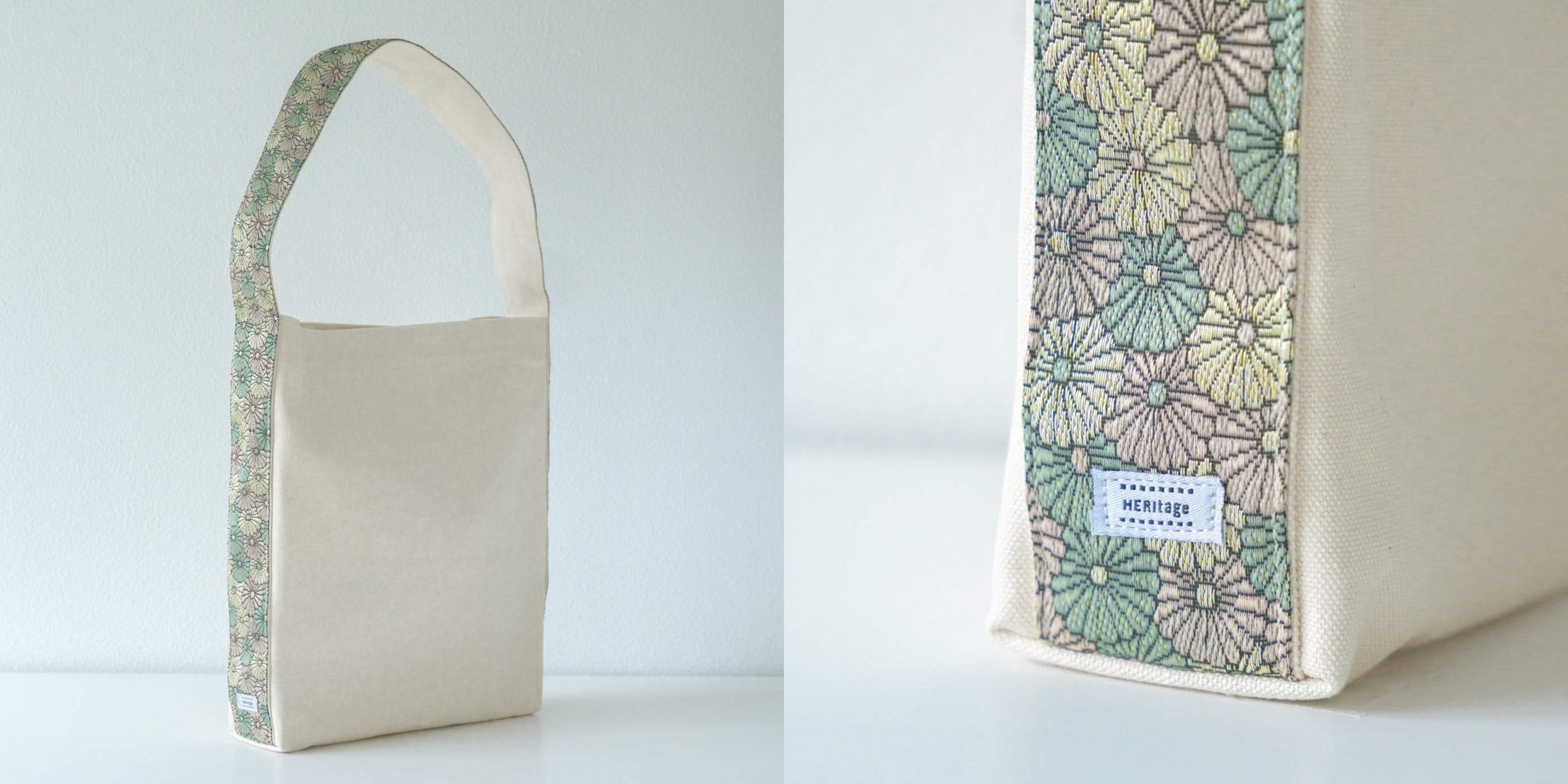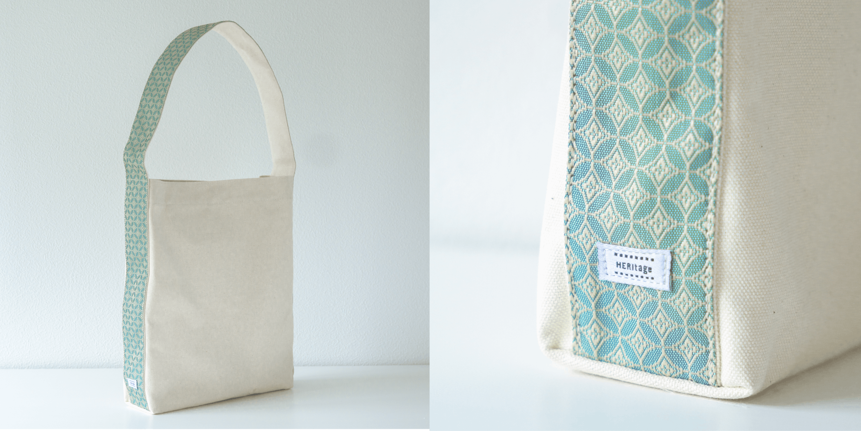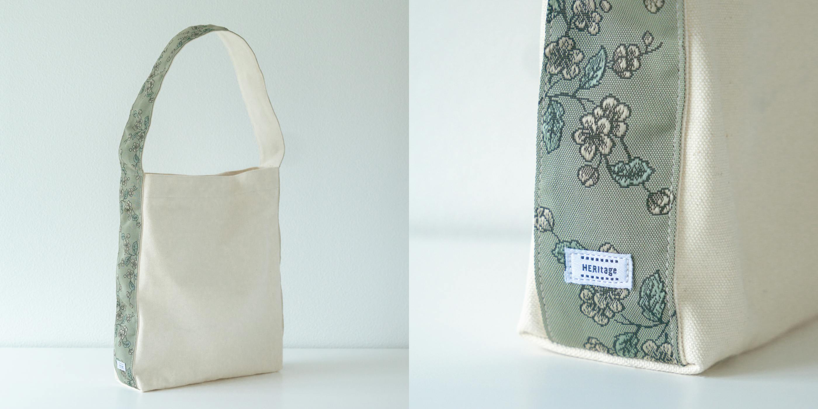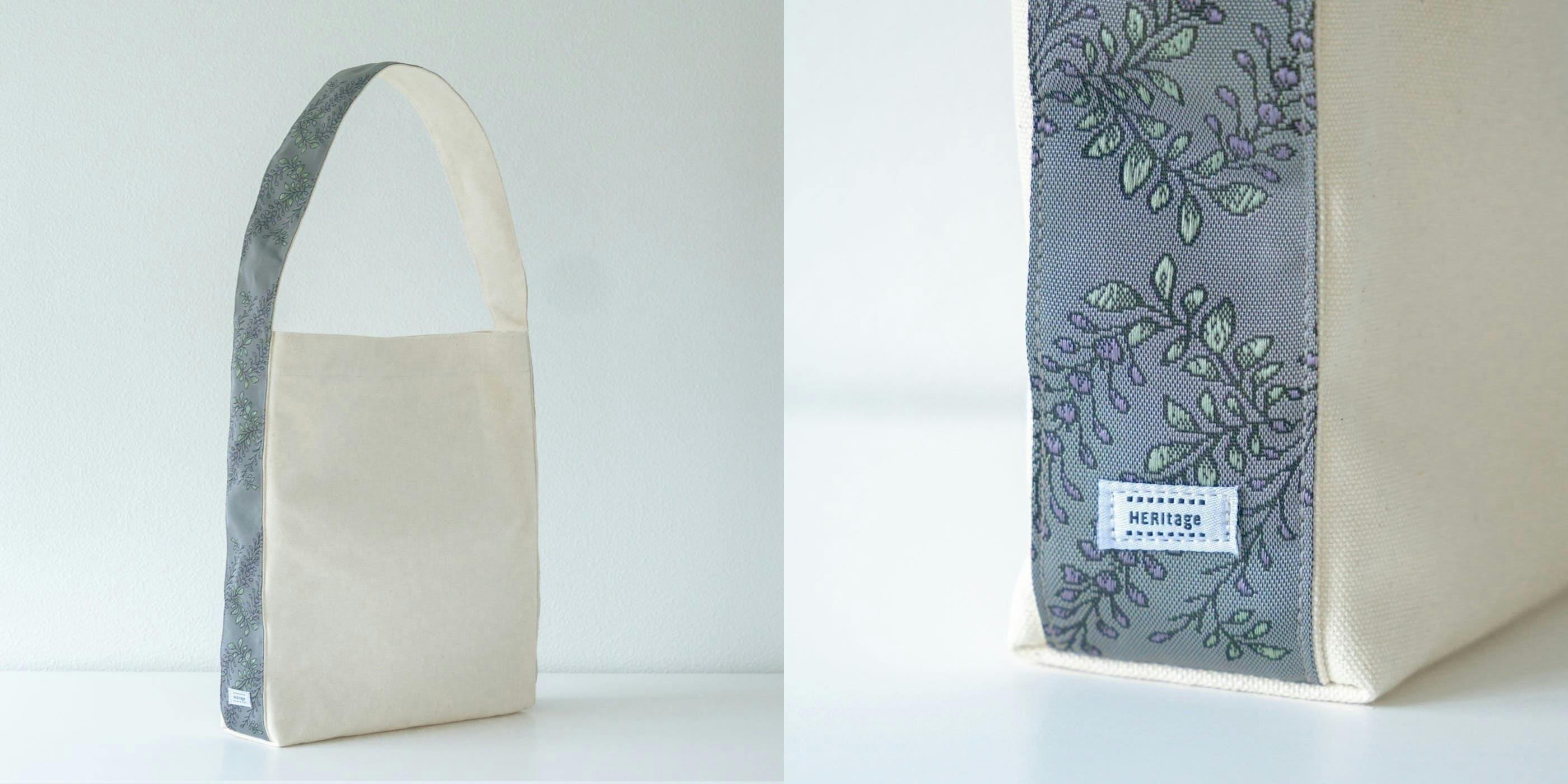 HERItage(ヘリテージ)は、畳の角を補強するために使用される畳縁(たたみべり)を持ち手にしたバッグです。