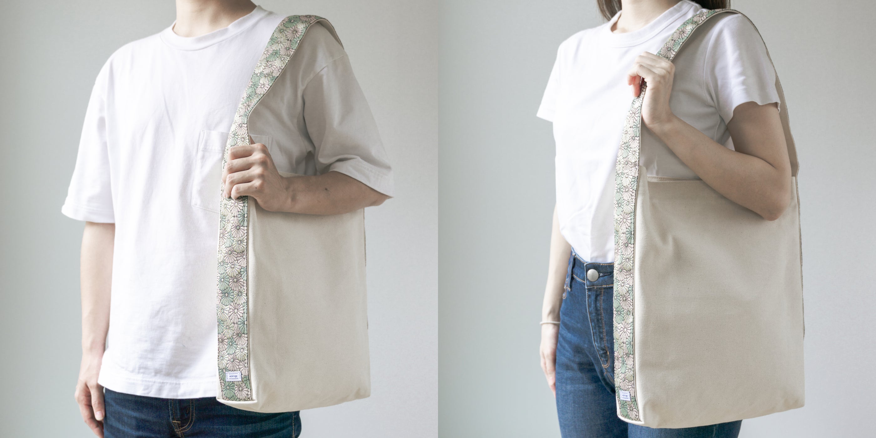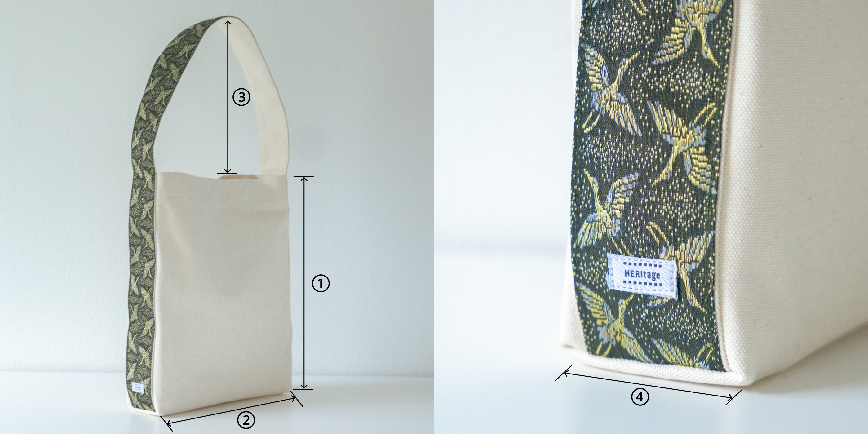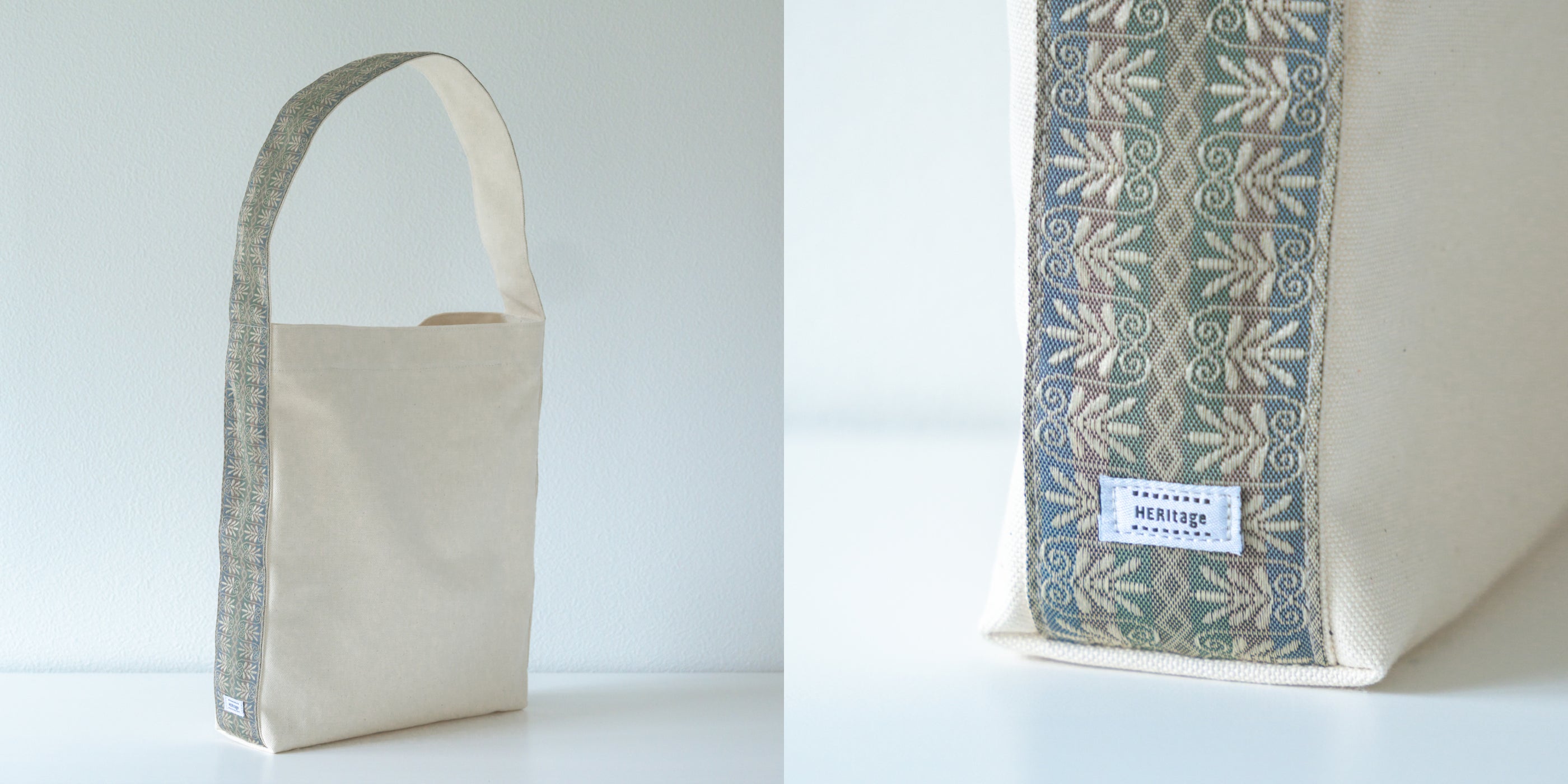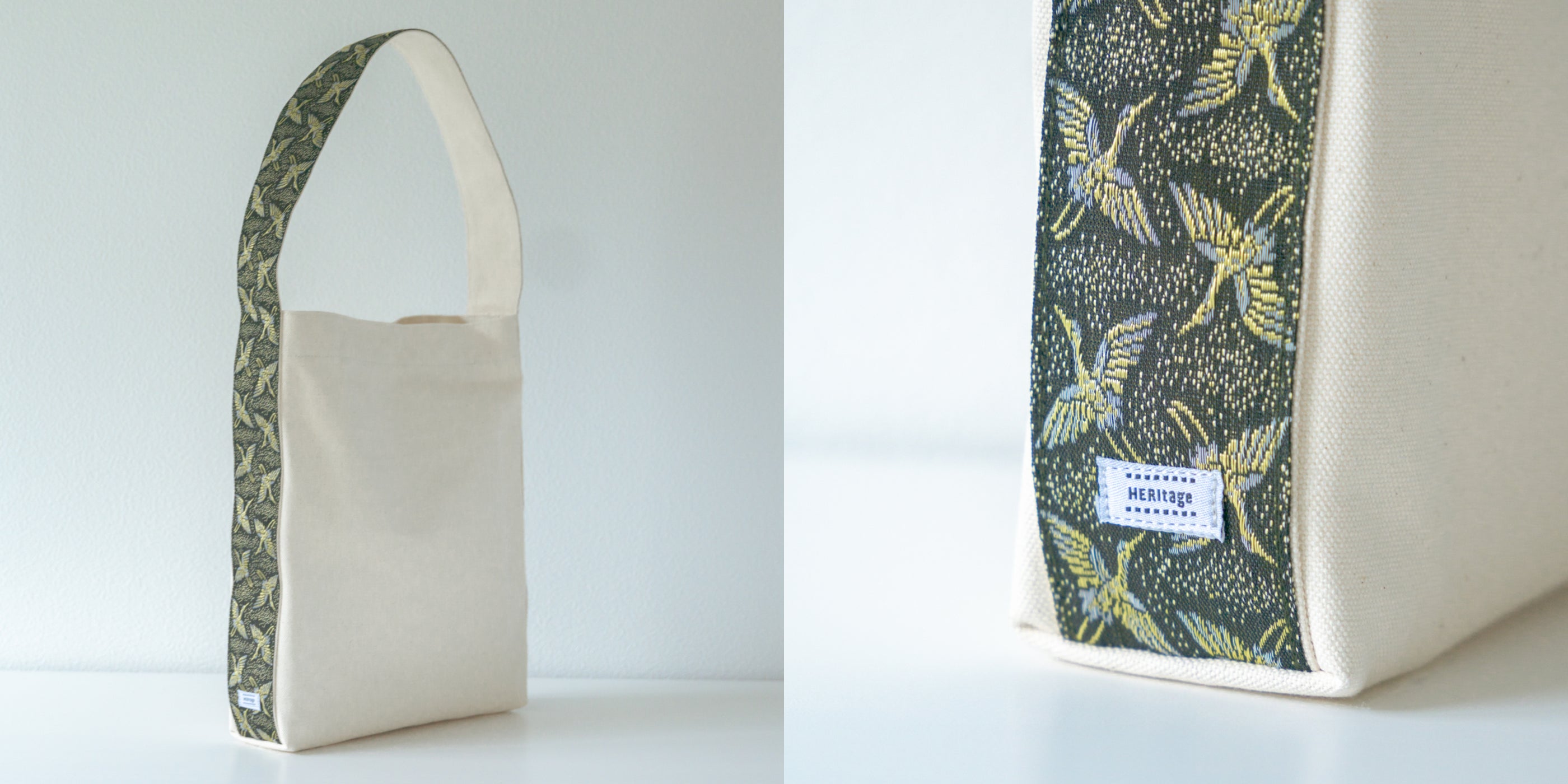 HERItage(ヘリテージ)は、畳の角を補強するために使用される畳縁(たたみべり)を持ち手にしたバッグです。