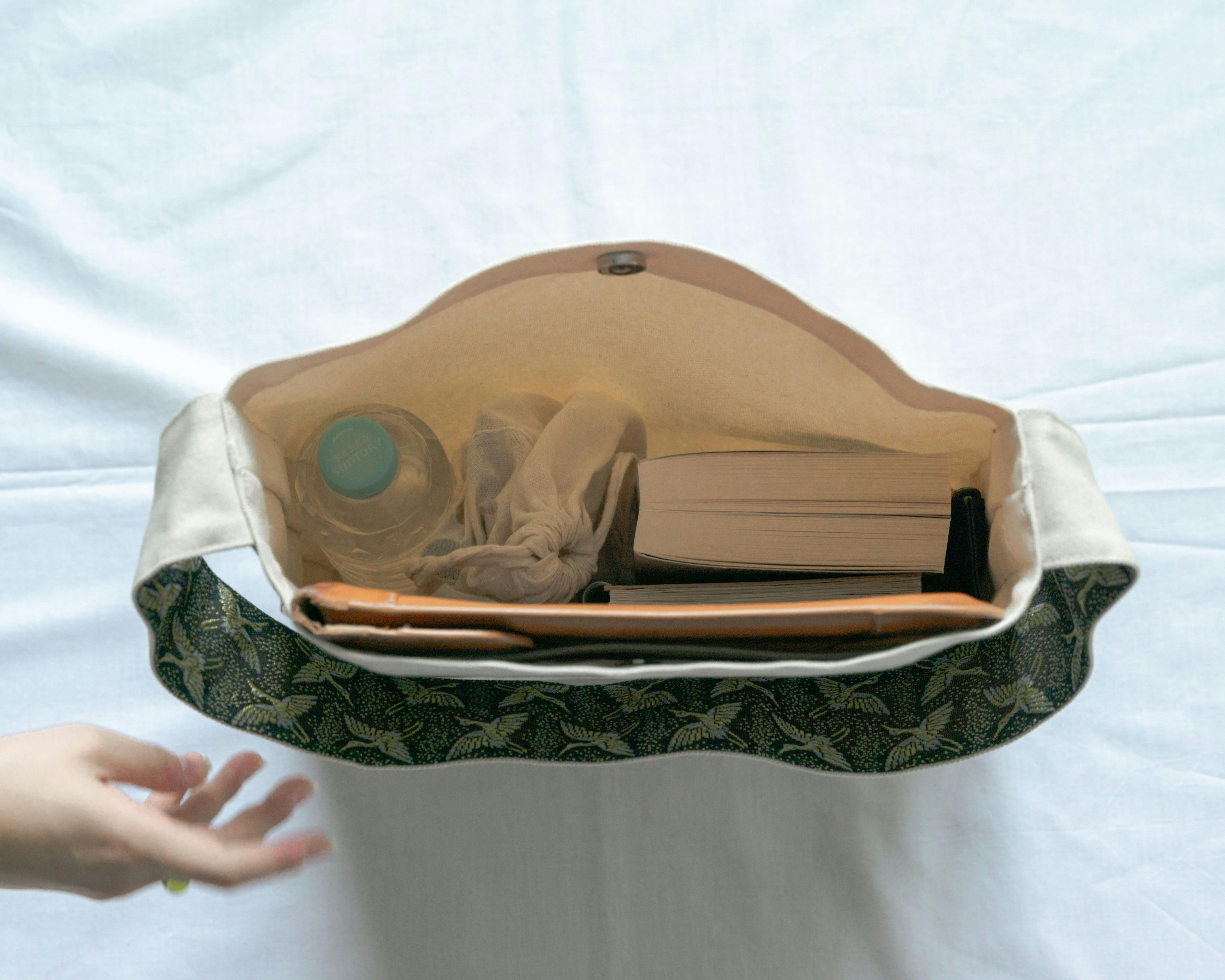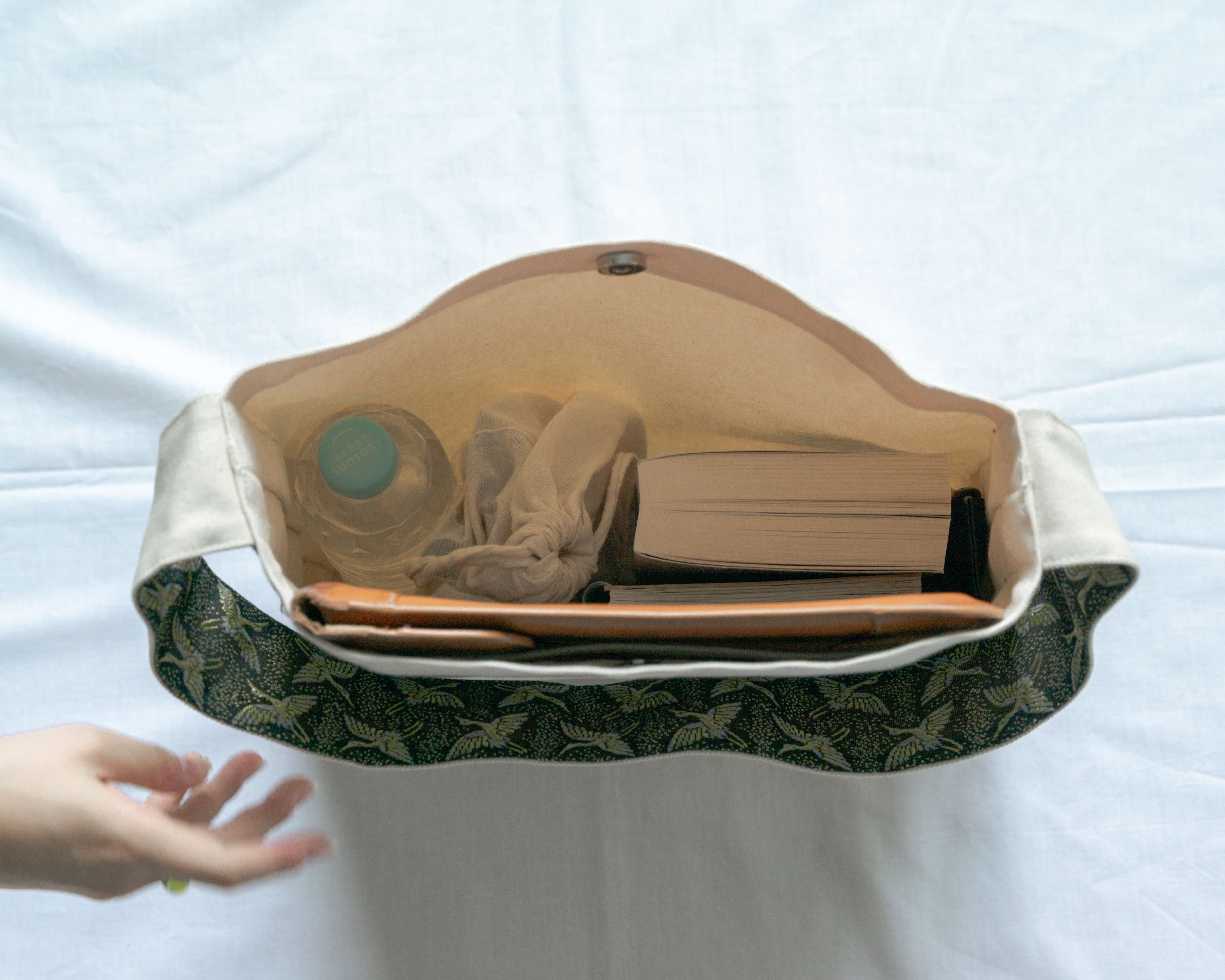 歩いている時に畳縁の持ち手の柄が視界に入ると気分も上がります。学生時代に出会っていたら、教科書などを入れて学校に持っていきたかったです。