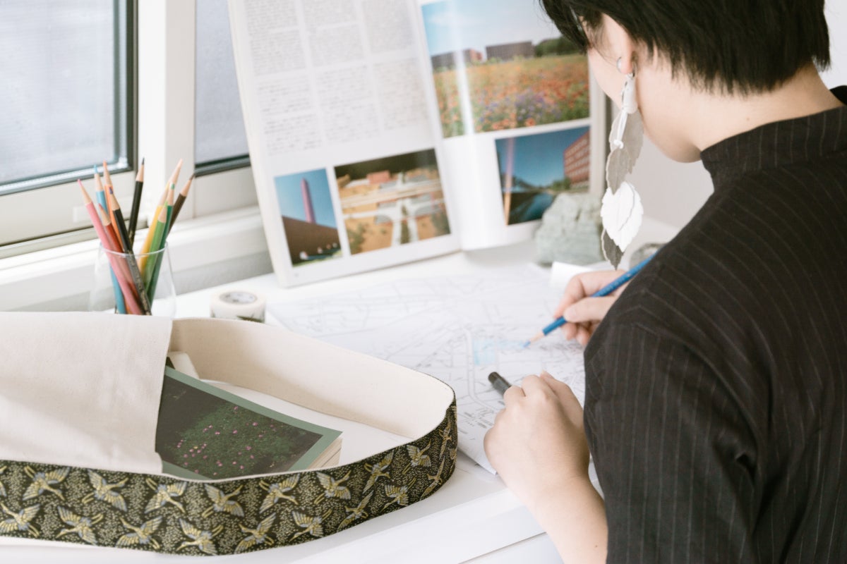 機能面では、パソコンなど重いものをたくさん入れても頑丈で持ちやすいです。デザイン面では、肩にかけたときに畳縁の縦のラインが出るので、背筋が伸びるような気がします。日常使いはもちろん、クライアントにプレゼンをするような、気合いを入れたい場面でも使っています。