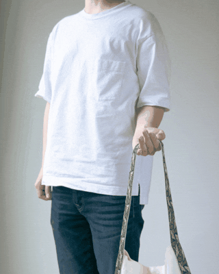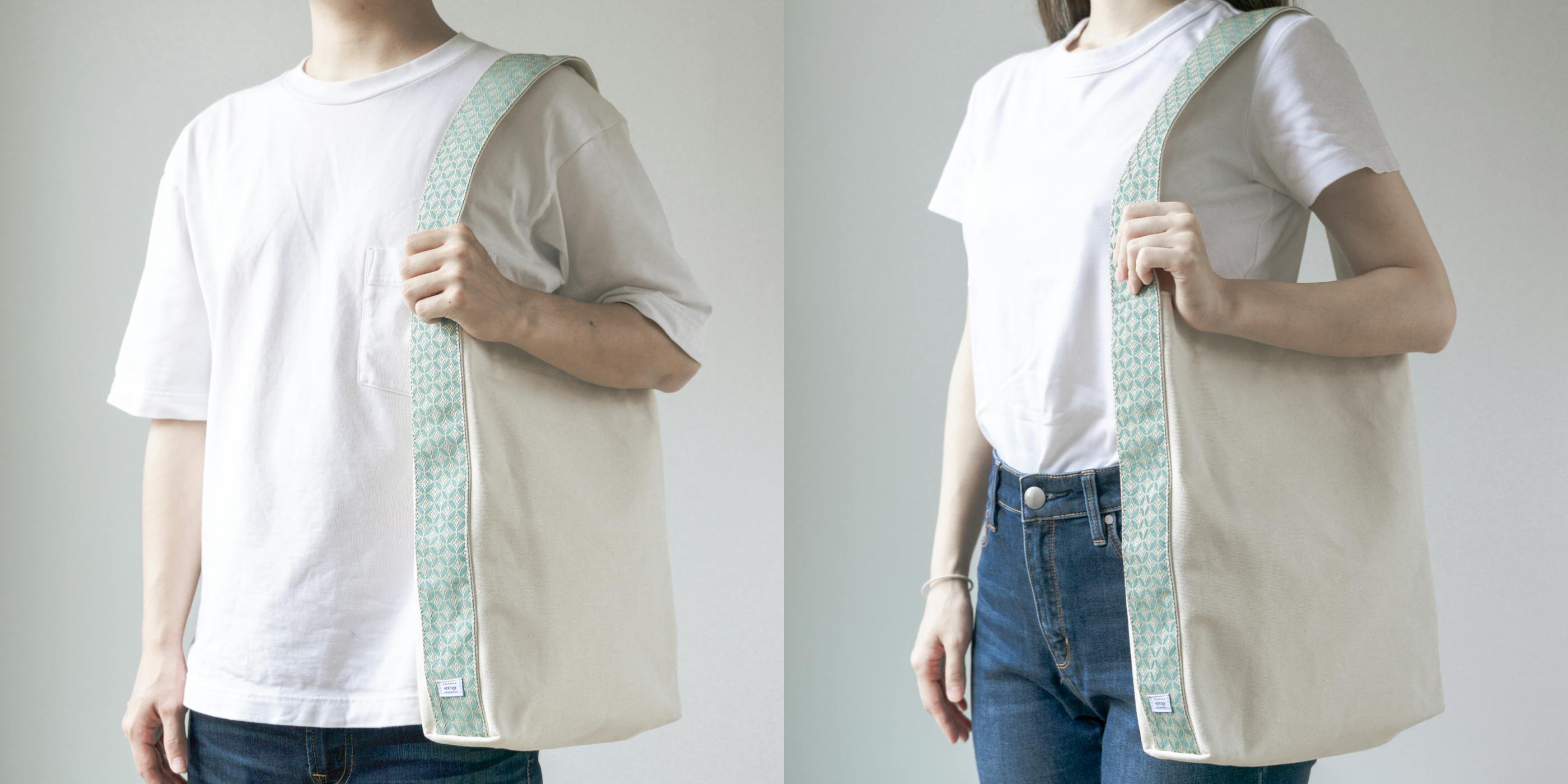 そのまま持ち手に使うことで、幅広な持ち手となり、負荷が分散され肩が痛くなりにくい構造になっています。