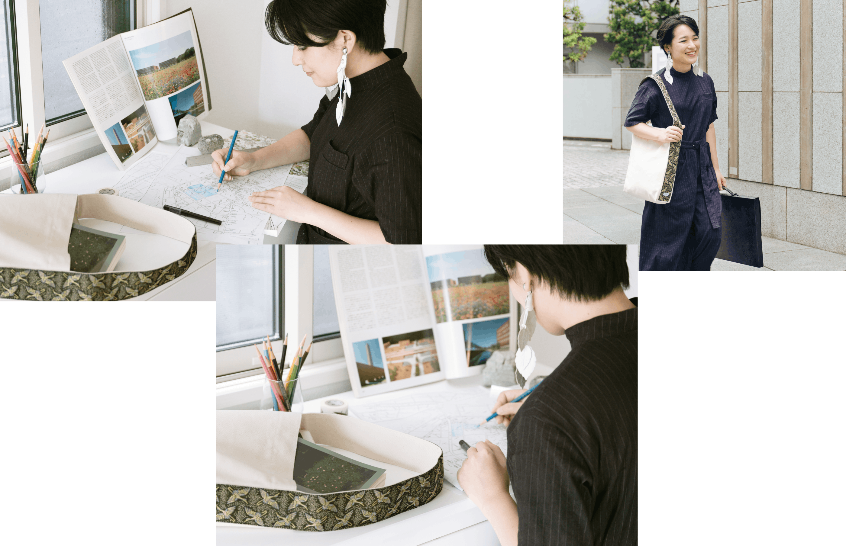 後から畳縁のストーリーも知りさらに惹かれました。海外での経験を通じて日本ならではの文化や魅力を大事にしたいという思いが芽生えていたのですが、そんな自分の思いとリンクする感覚を持ちました。このバッグを持つことで、自分の価値観を表現することにも繋がると感じています。