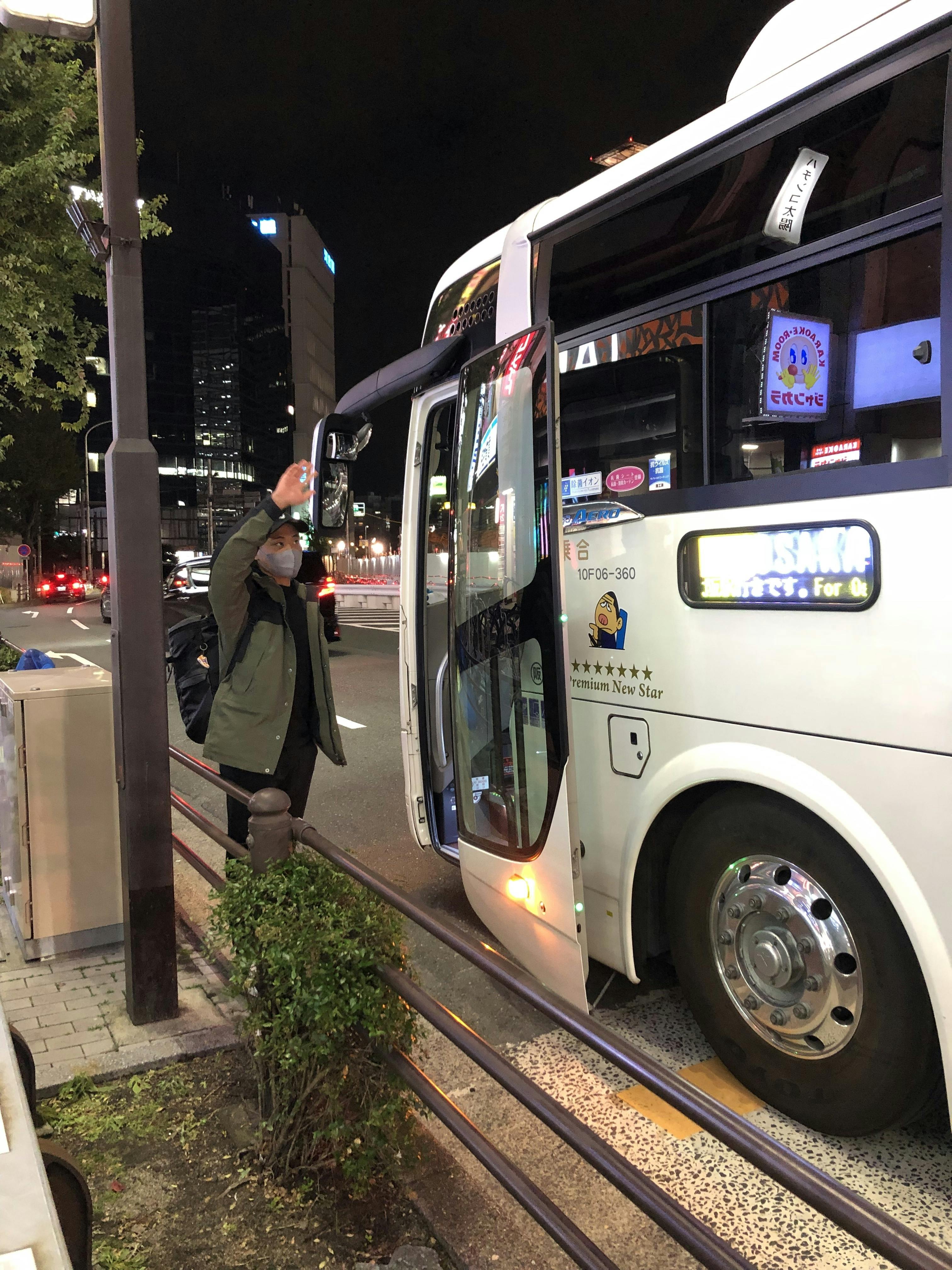 そして今日の夜吉良くんが名古屋から大阪行きのバスに乗りました