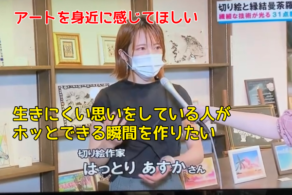 普段私は精神科で勤務をしながら、切り絵作家として活動をしています。生きにくい思いをしている人の気持ちを少しでも楽にしたいという思いから、YouTube等でメンタルケアに関する情報発信と、アート活動に力を入れています。