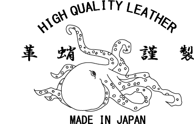 ※美しい革の表面にはカワタコジェンツ&革たこメインロゴマークの打刻が深く刻まれます