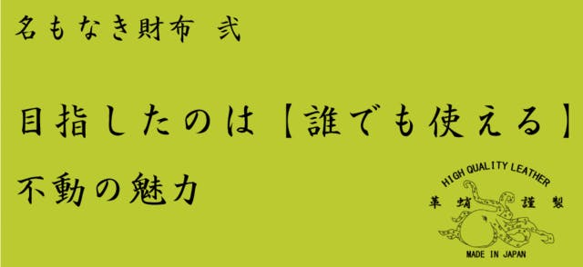 いかがでしょうか、不動の魅力を追求し製作致しました、名もなき財布 弐。是非皆様からの御支援・応援お待ちしております。