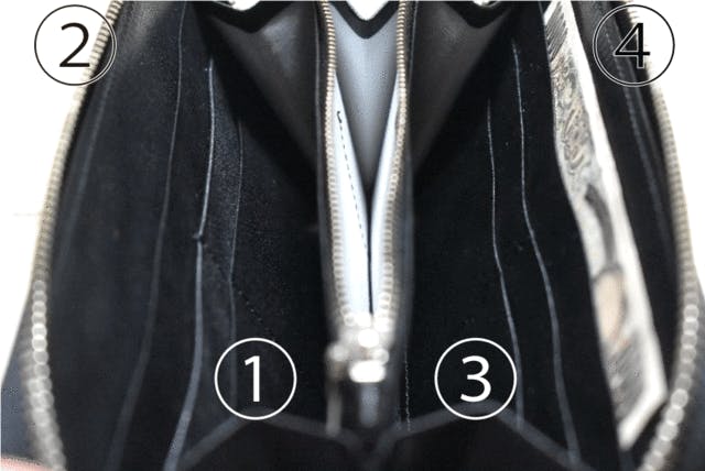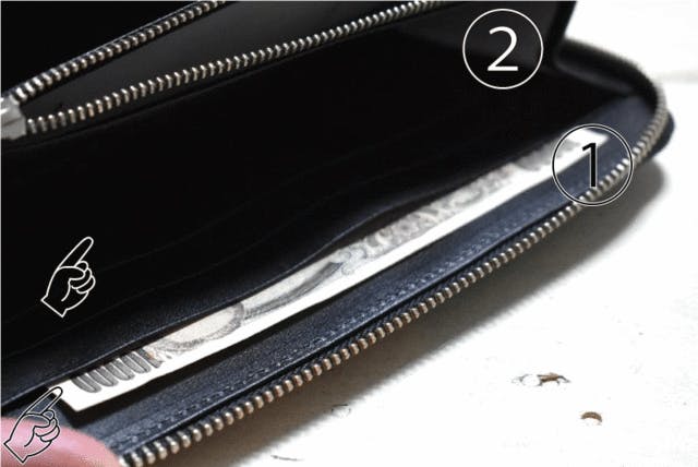 片側に2か所の札入れスペースを設けてありますので使い分けにも対応できます。