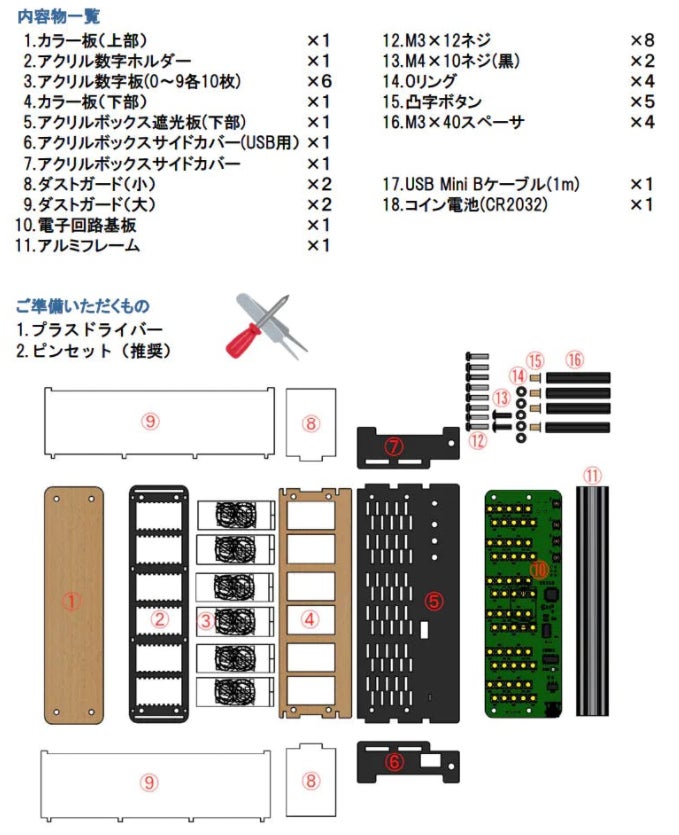 アクリルの保護フィルムを剥がすのに90分、組み立てに30分を想定しています。