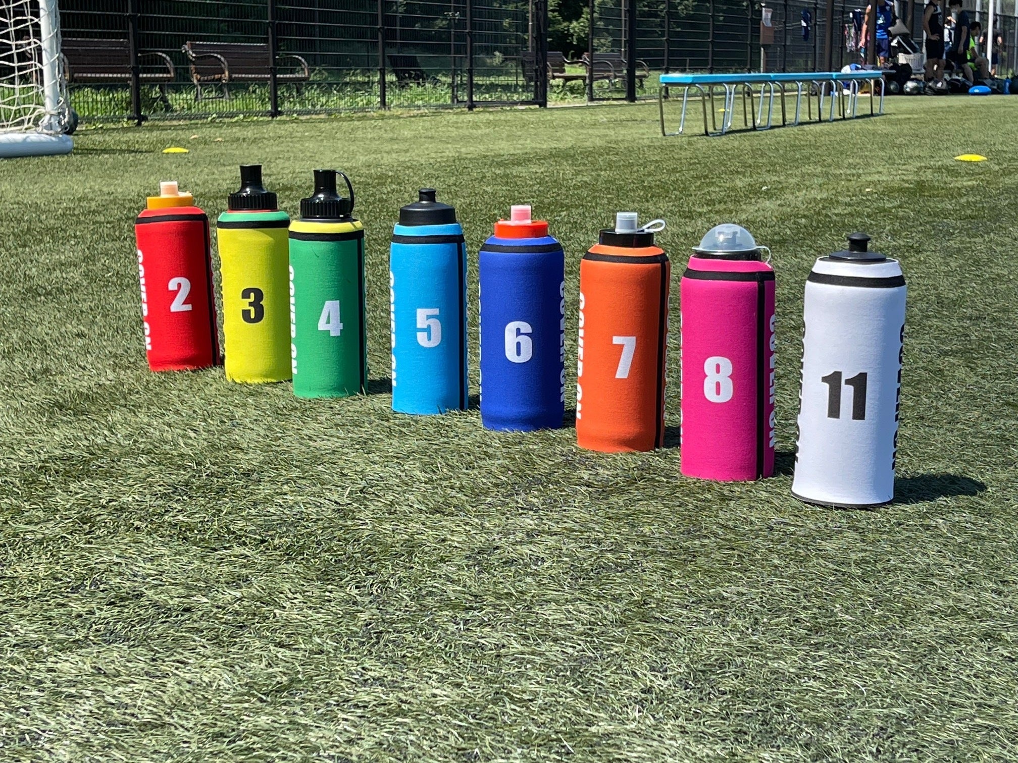 チームカラーと大きなナンバリングで、すぐに誰のものかわかるので、選手だけでなく、マネージャーからも「選手にボトルを手渡す時にわかりやすい」と好評です。