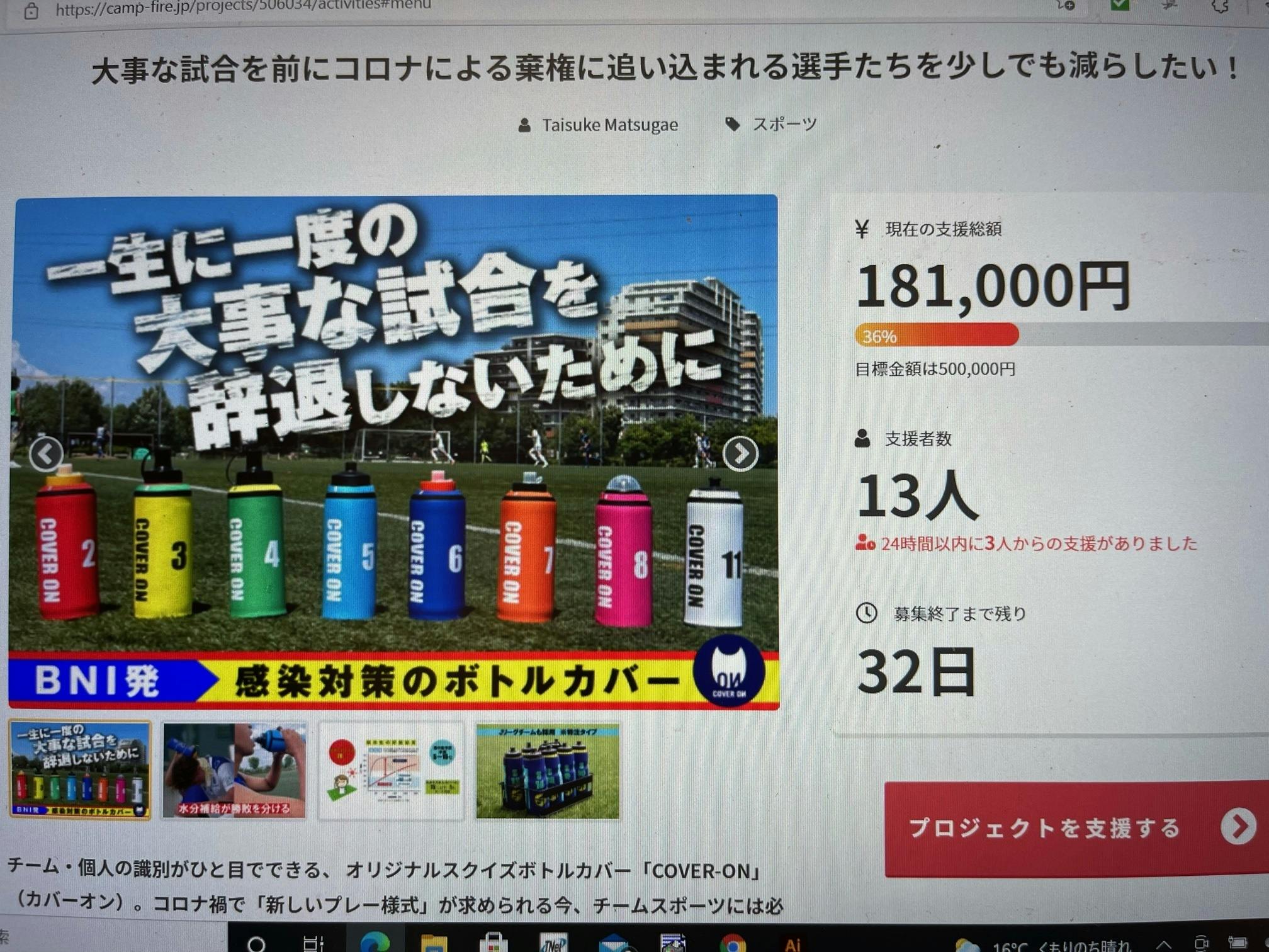 皆様の応援のおかげで、2日目で目標金額の36%を達成しました。