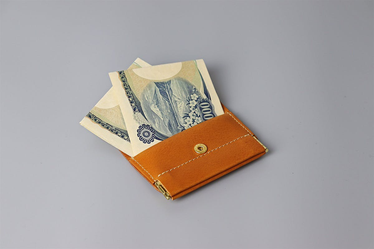 「ワンマイルウォレット」は会計時の効率を考え、ホックを開けることなく、お札を取り出すことができるギミックを搭載しました。