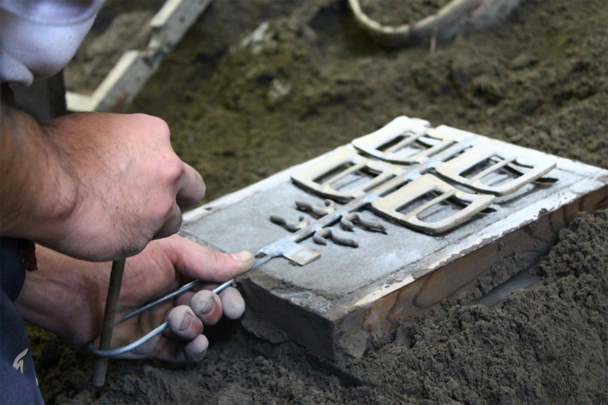 上白石社の真鍮鋳物金具は砂型鋳造で作成されています。金型のように自動機を使用して作られたものと違い、職人により全ての工程をひとつひとつ手作業で丹精込めて作られます。機械製造にはない手作り製品の持つ暖かさ・優しさの魅力を是非味わって下さい。