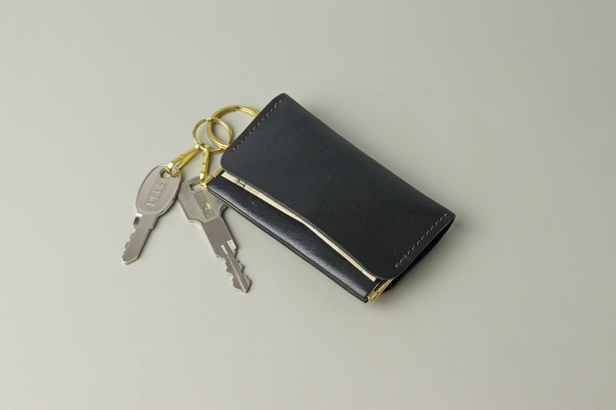 鍵は基本的に外に出して使用する想定ですが、厚みのない鍵などはお札入れの蓋に挟んで中に収納することも可能です。
