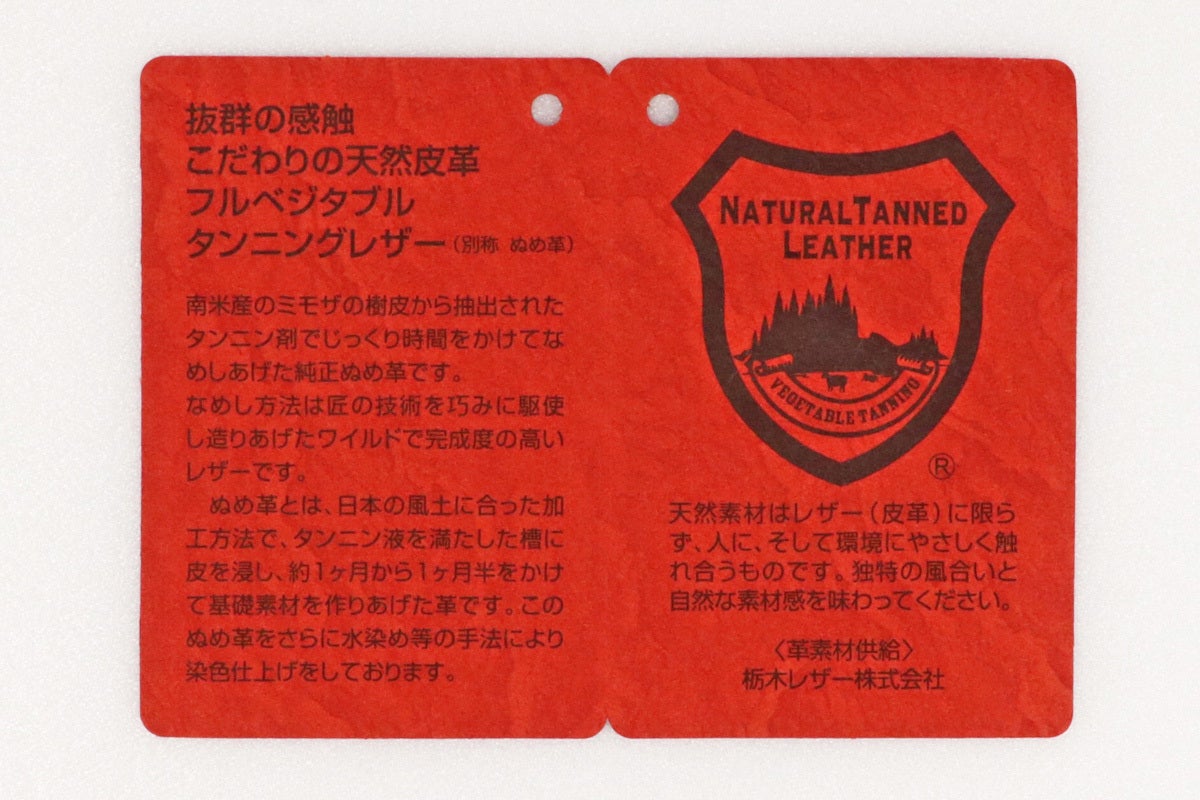 革部分は100%栃木レザーで製造しており、品質の証明書である「赤タグ」が付属します。