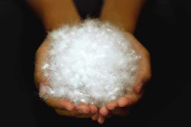 羽毛は食肉用の水鳥から採取した再生可能資源ですが、その多くはゴミとして焼却されてきました。