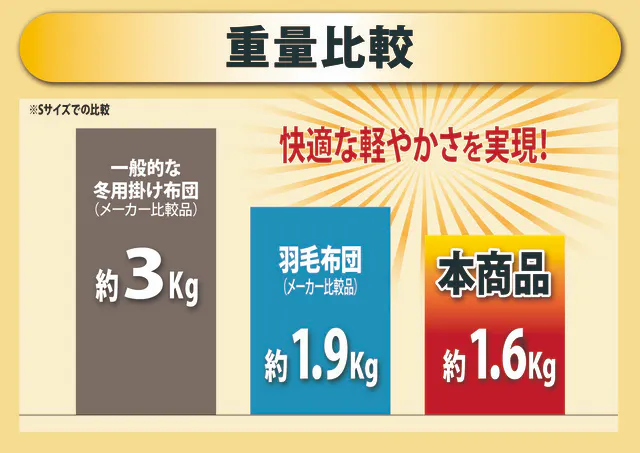 掛けた時に重苦しさを感じづらく朝まで快適にぐっすりお休みいただけます。