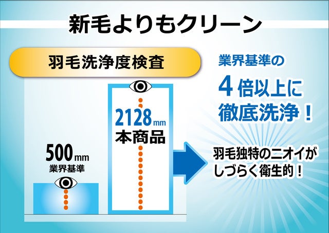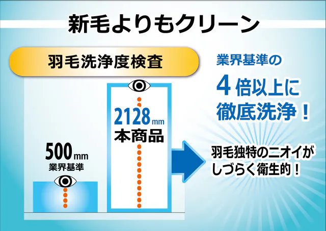 「REFINE DOWN」は通常の羽毛の業界基準の4倍以上に徹底的に洗浄することで、ホコリ、アカ、塵なども通常の新毛の羽毛以上に取り除かれるので、羽毛独特にニオイもしづらく非常に衛生的です。