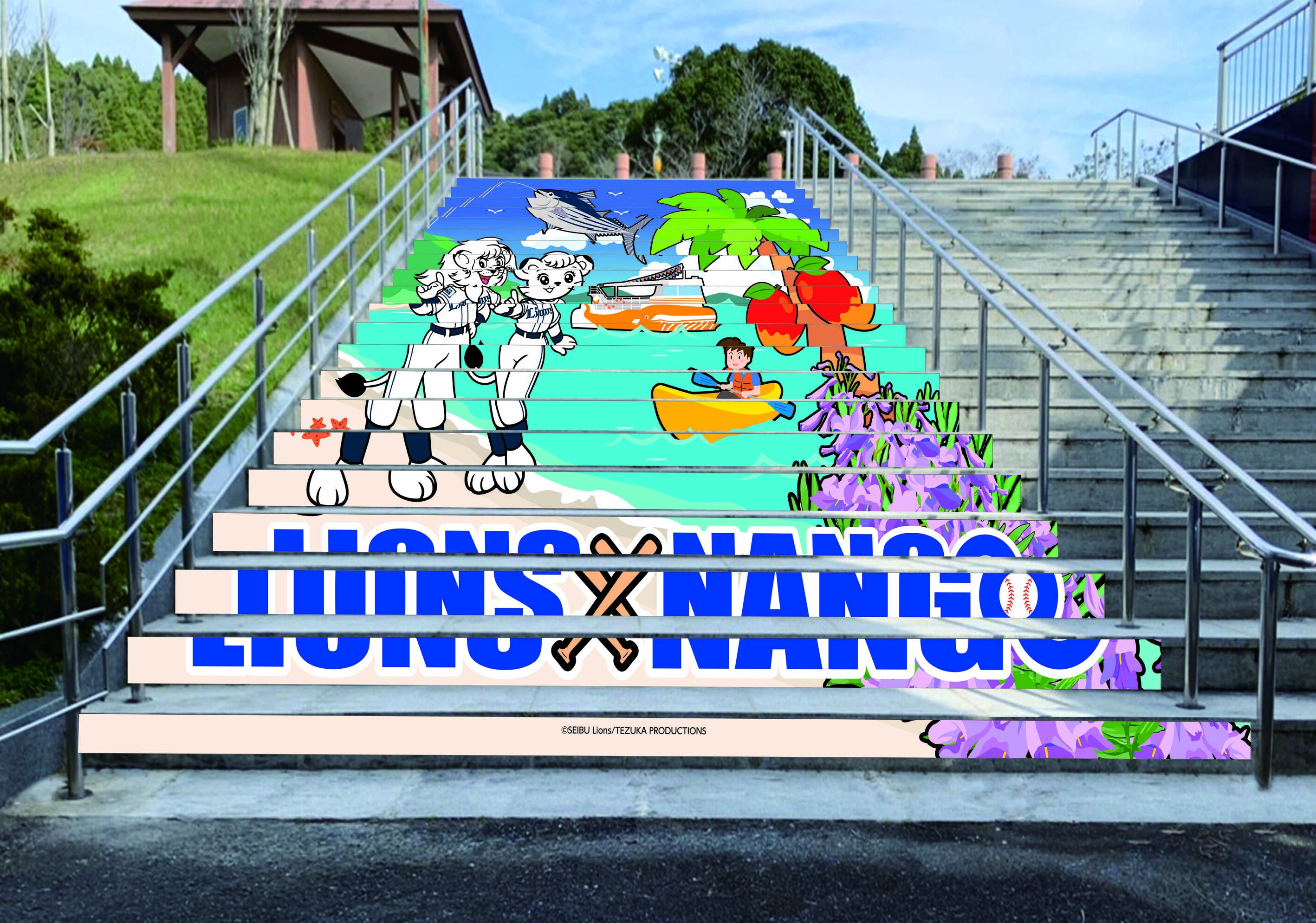 クラウドファンディングも残り2日となりました。今まで多くの方にご支援を頂きました。本当にありがとうございます。今回は実際に階段アートの立体図をご紹介します。以前デザインを公開しましたが、階段に張り付けるとこのようなイメージになります。南郷の特産品やライオンズのレオとライナも描かれていて、可愛いデザインとなっております。高校生がデザインしたものがこのような形で残るとすごく嬉しいですよね、、残り2日ですが、まだまだご支援を受け付けております。ラストスパート、高校生も頑張っておりますので、引き続きよろしくお願いいたします!